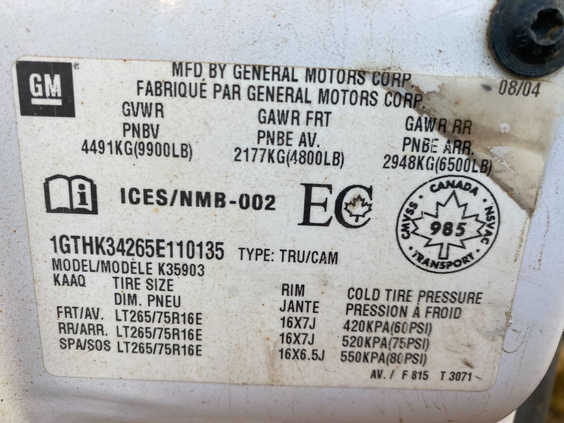 2005 GMC 3500HD Duramax diesel, reg. cab 4x4, mag wheels, SN. 1GTHK3426SE110135, not running