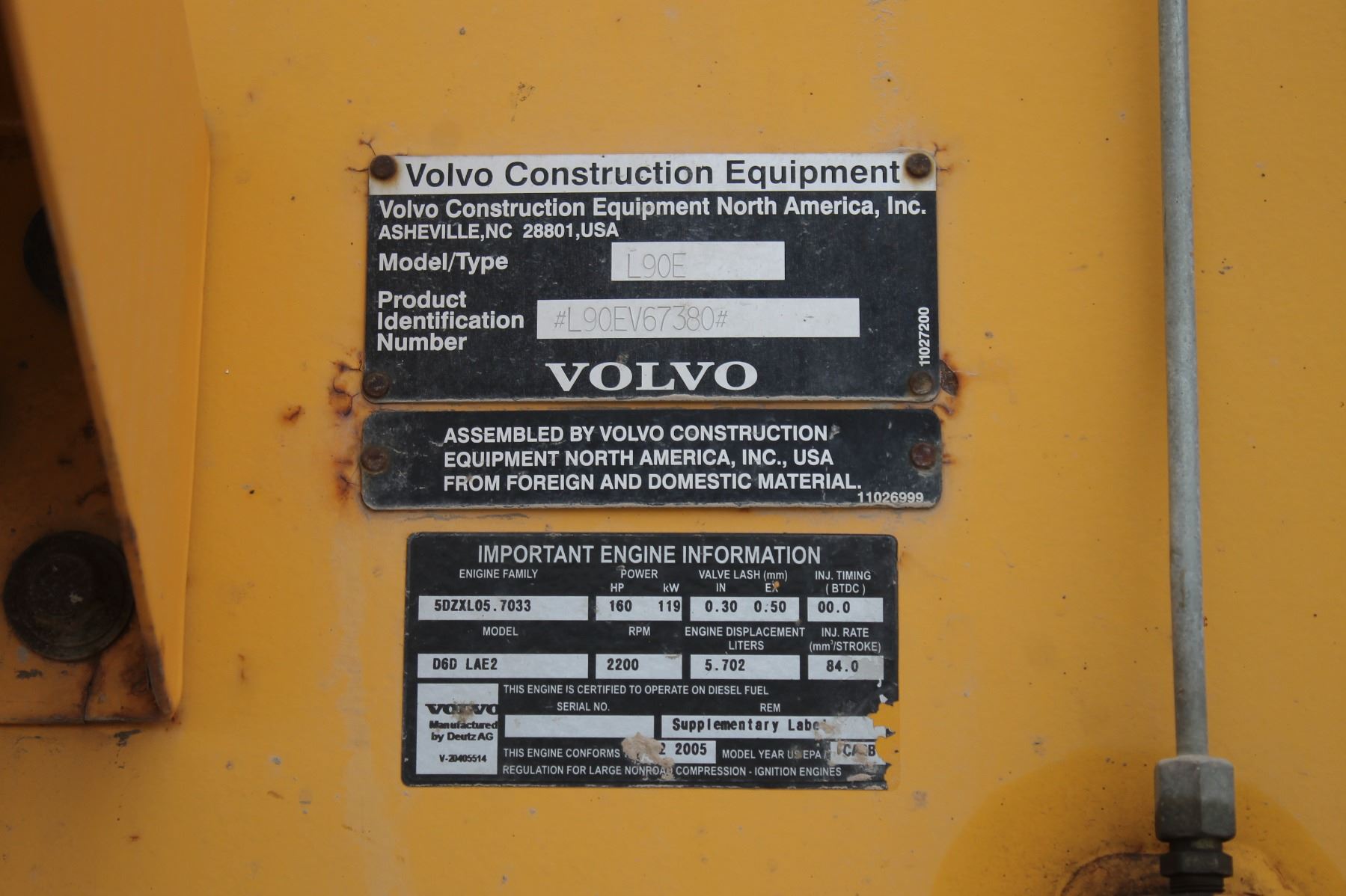 2005 Volvo Model L90E c/w approx 4 yard bucket, 20.5X25 Tires, Aux Hyd.Q/Attach, SN.L90EV67380