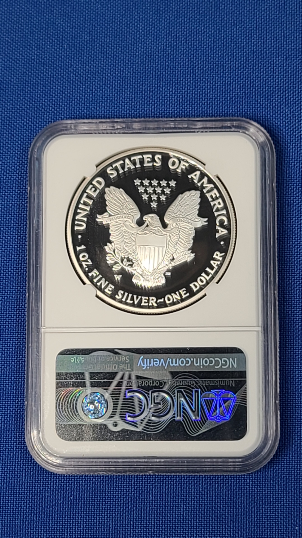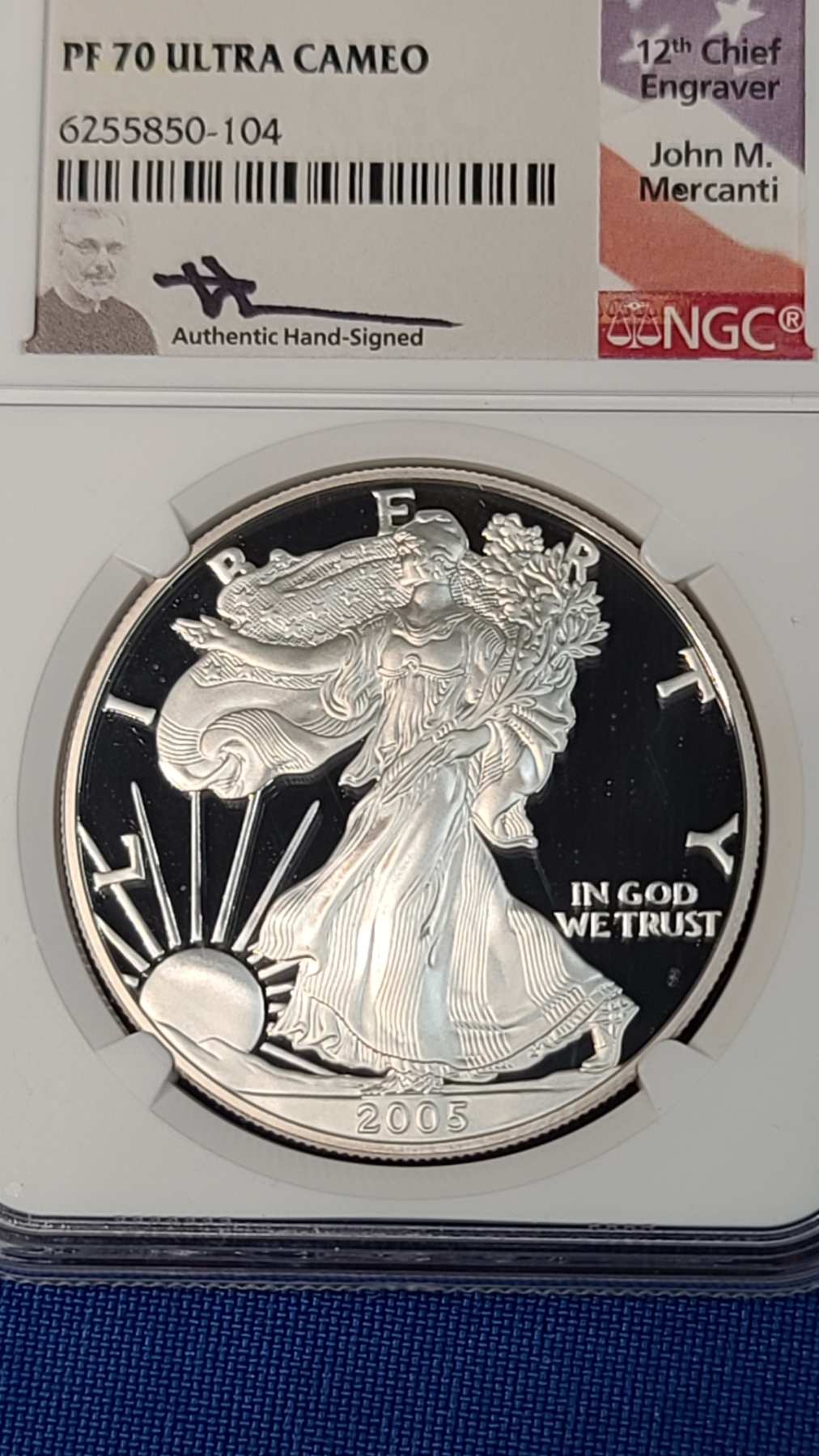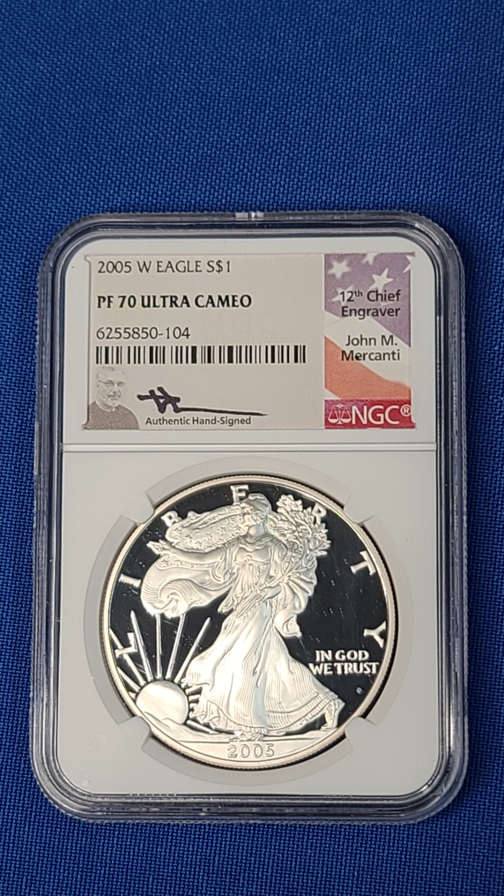 2005-W NGC PF 70 ULTRA CAMEO 1 oz Silver American Eagle Hand Signed By U.S Mint Engraver John M. Mercanti
