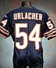 The bottom of the jersey has been custom hemmed and shortened with elastic added. Inside the back collar of this jersey is a manufacturer's tag with "06-50" on it. On the bottom front collar is the embroidered official "NFL Equipment" logo patch. The player number "54" appears on the front, back and sleeves in white on orange tackle twill. Across the back is the player name "URLACHER" on a navy name plate in white on orange tackle twill. Above the player number on each sleeve is the embroidered "Reebok" logo patch. The jersey has navy spandex sides and custom elastic sleeves. The jersey shows game-use and besides being custom shortened there appears to be no alterations of any kind.