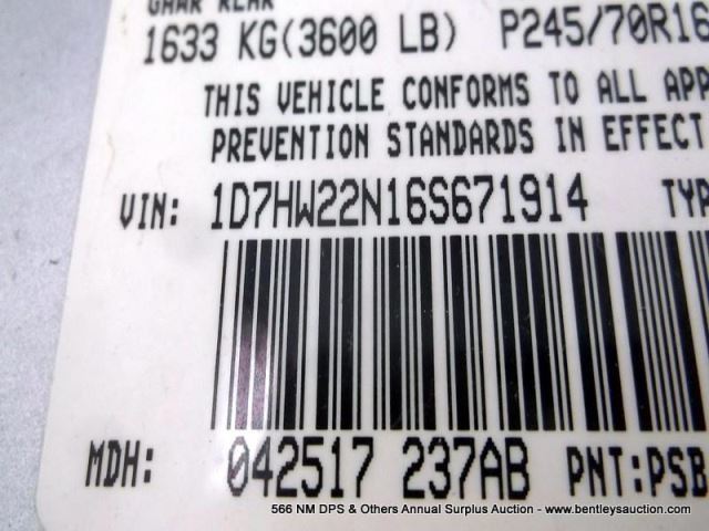 2006 DODGE DAKOTA PICKUP 4WD 4X4 ~ 104,780 MILES VIN: 1D7HW22N16S671914, PICKUP, 4WD, V8, 4.7L, GREY, A/C COLD, EMPTY TANK, LEFT REAR GENDER DENTED, NMGF TITLE #: 13126134A001725 1 KEY G-64710 G-64710