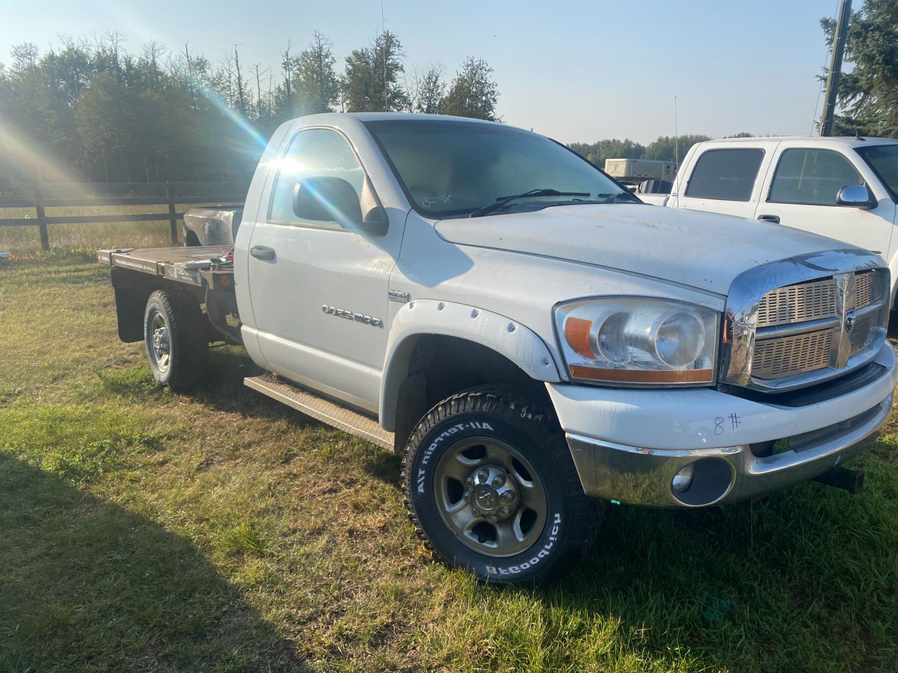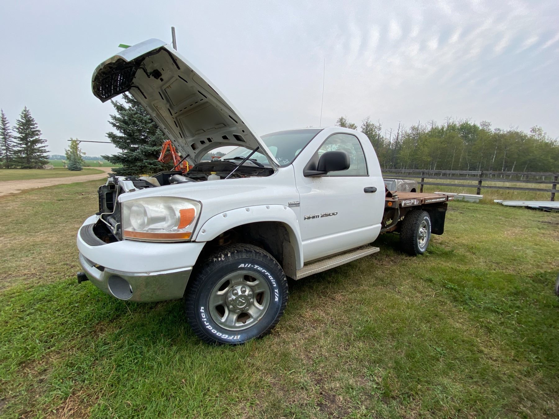 2006 White Dodge ram 2500 c/w hydra Bale Deck, V8 gas 4x4, Truck is not running #3D6WS26DX6G258020, mechanic believes it's a modular issue, truck appears in decent shape