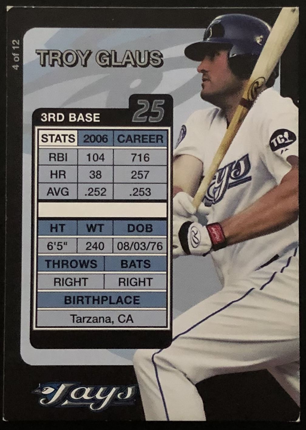 Card #4, promotional issue by team baseball, MLB, regional