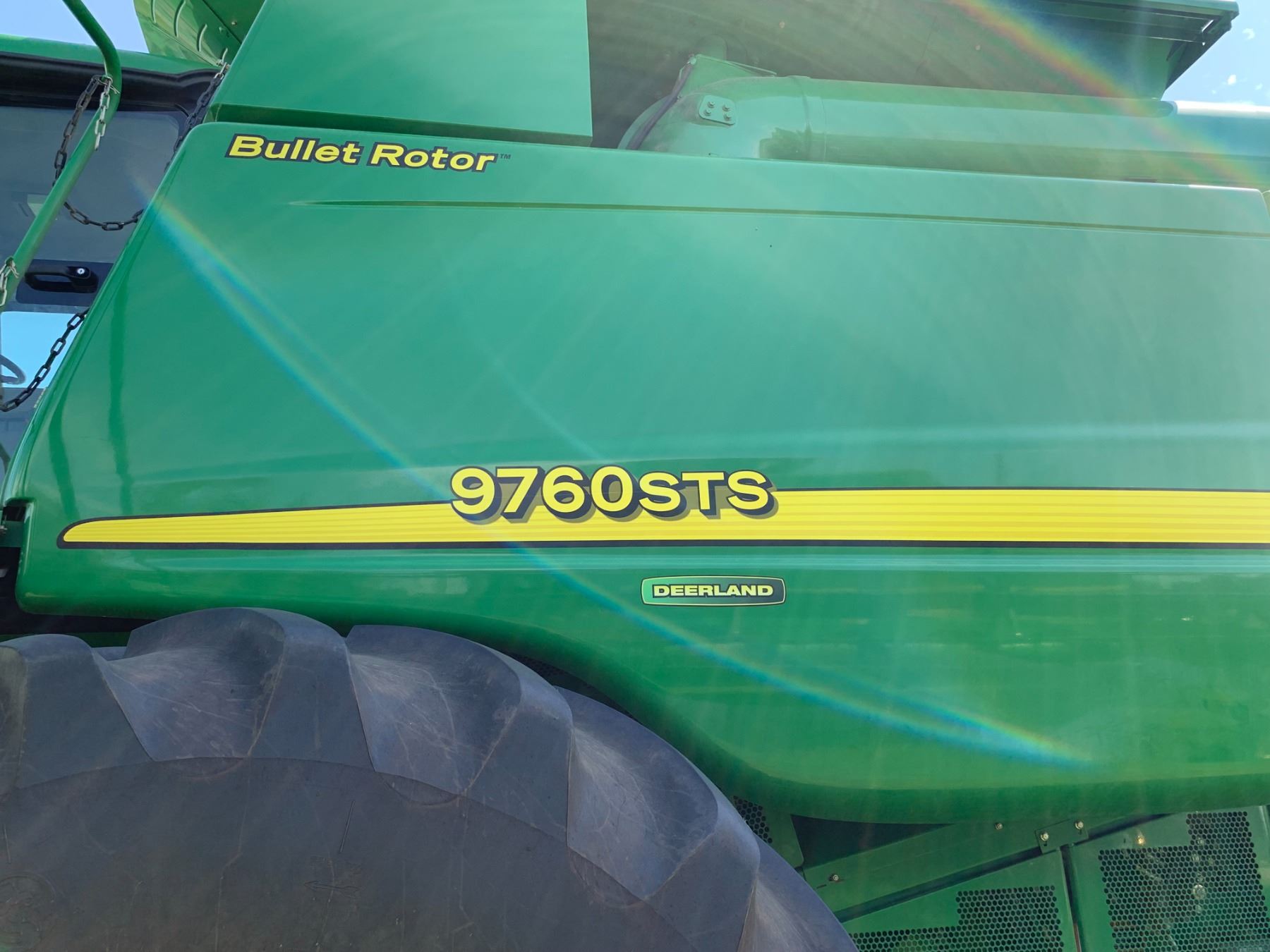 2007 JD 9760STS Combine, bullet rotor, 2311 eng. Hrs, 1610 sep. hrs, 4 belt P.Up, chopper, 800/70R38 tires, SN. H09760S721451 c/w 2010 615P JD Header, SN. H00615P720624, shedded, PH Bob McEwen at (780) 264-0821 OR Dean (780) 264-0752