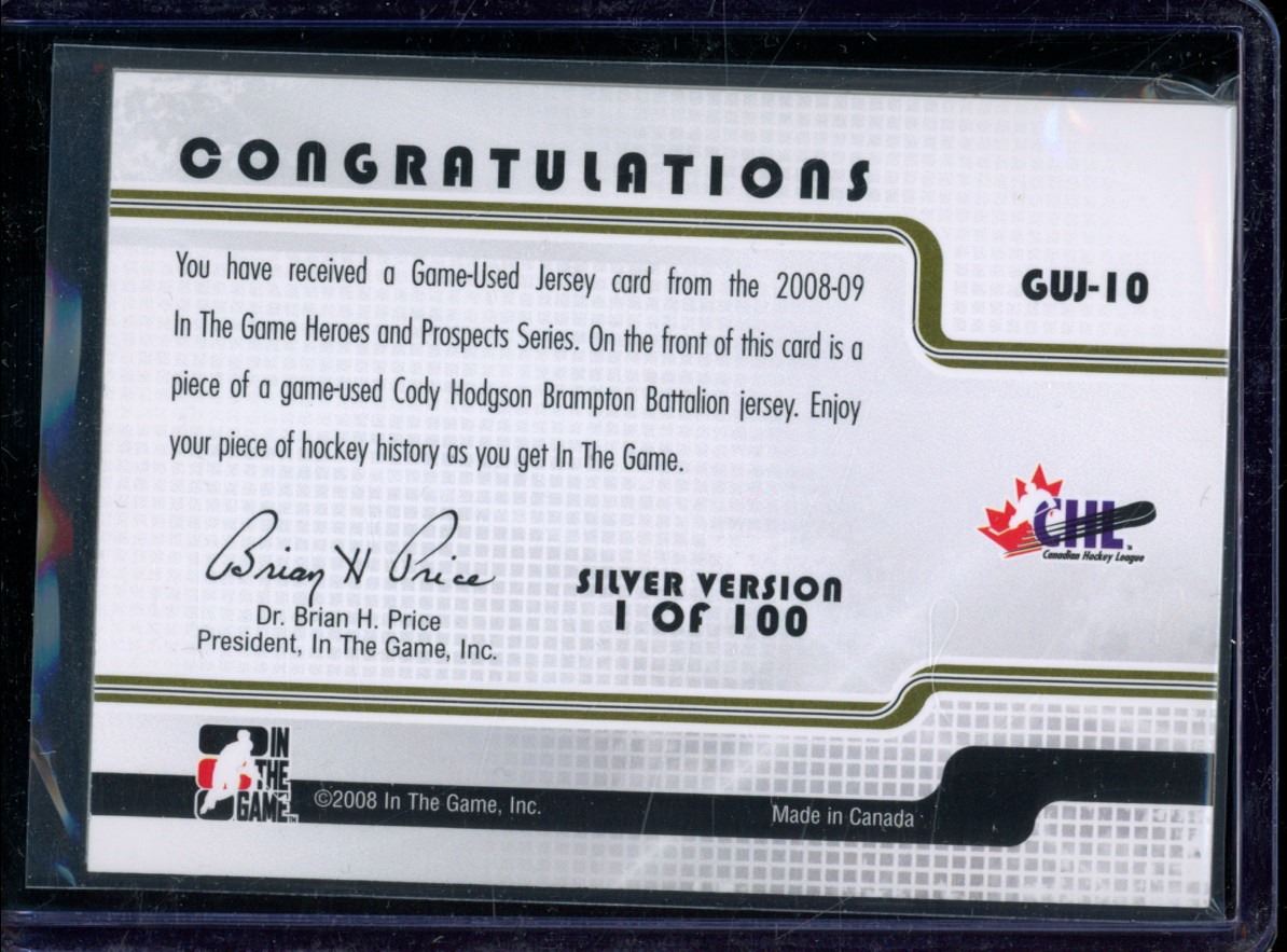 2008-09 ITG Heroes and Prospects Jerseys #GUJ10 Cody Hodgson 1/100 BV $40