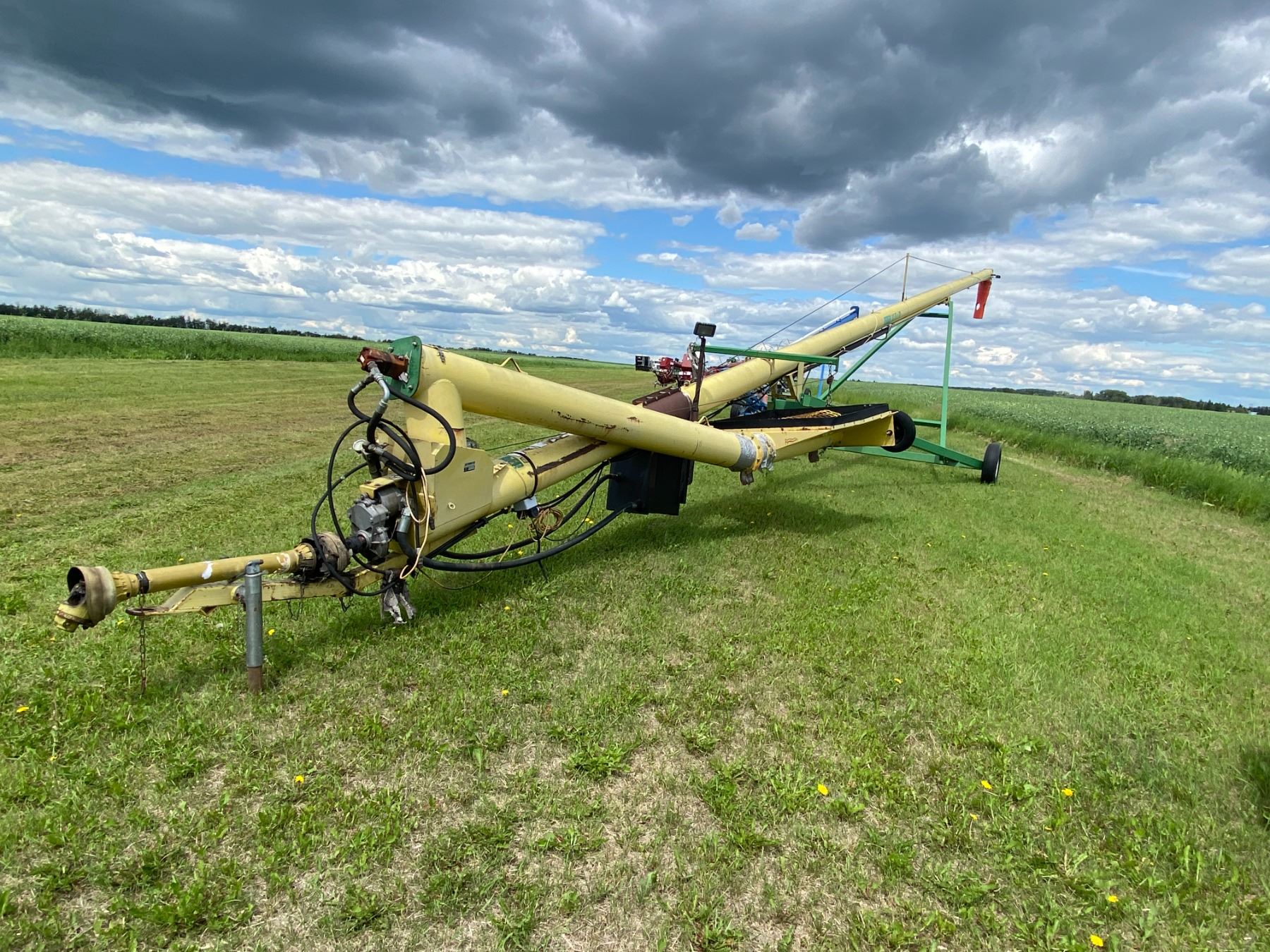 2008 BERGEN 10X70 PTO Swing away Auger, Model BSA, SN. 22044 c/w with a full bin sensor, needs work