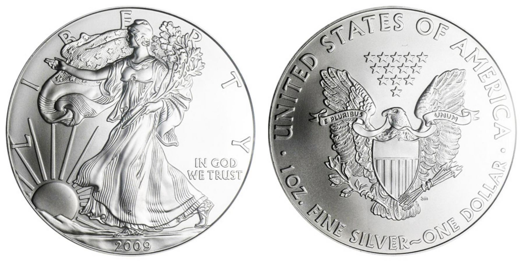 One 2009 American Silver Eagle .999 Fine Silver Dollar Coin.