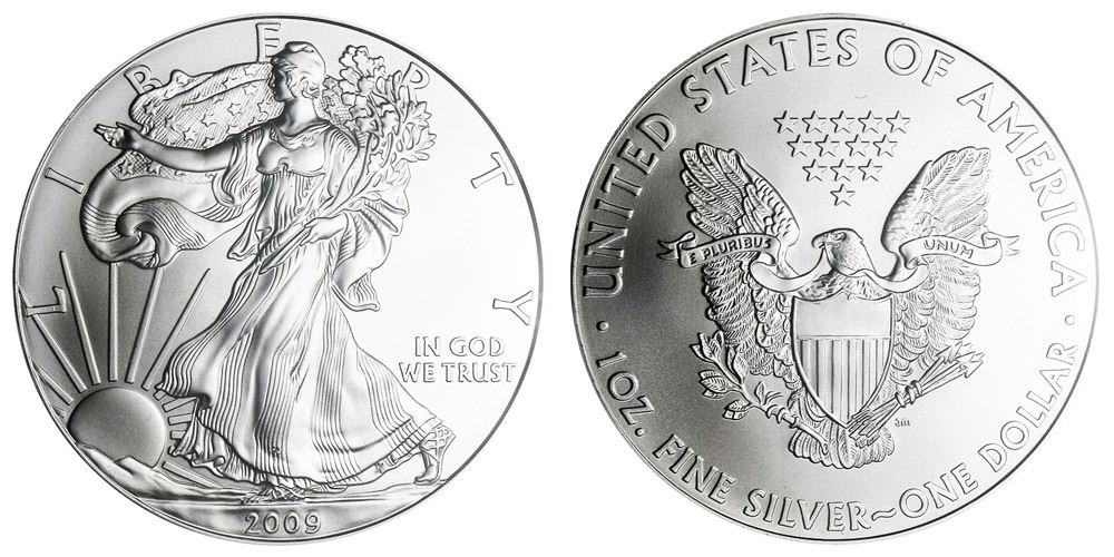 One 2009 American Silver Eagle.999 Fine Silver Dollar Coin.