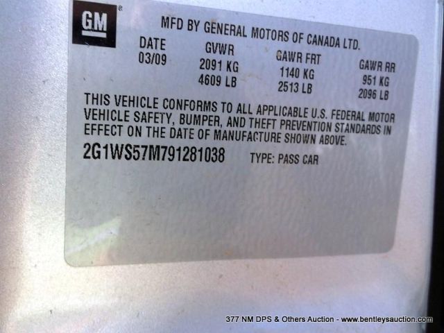 2009 Chevrolet Impala, 120,605 MILES VIN: 2G1WS57M791281038 SEDAN, FWD, V6, 3.9L TITLE # 09132434A