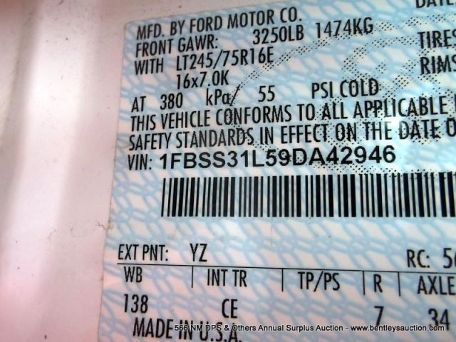 2009 FORD ECONOLINE E350 VAN ~ 116,195 MILES VIN: 1FBSS31L59DA42946, E-SERIES WAGON, FULL-SIZE, RWD, V8, 5.4L, WHITE, A/C COLD, FULL TANK GAS, SLIGHT DENT LEFT REAR FENDER, CSF TITLE #: 09098434A292790 1 KEY 53994 G76173