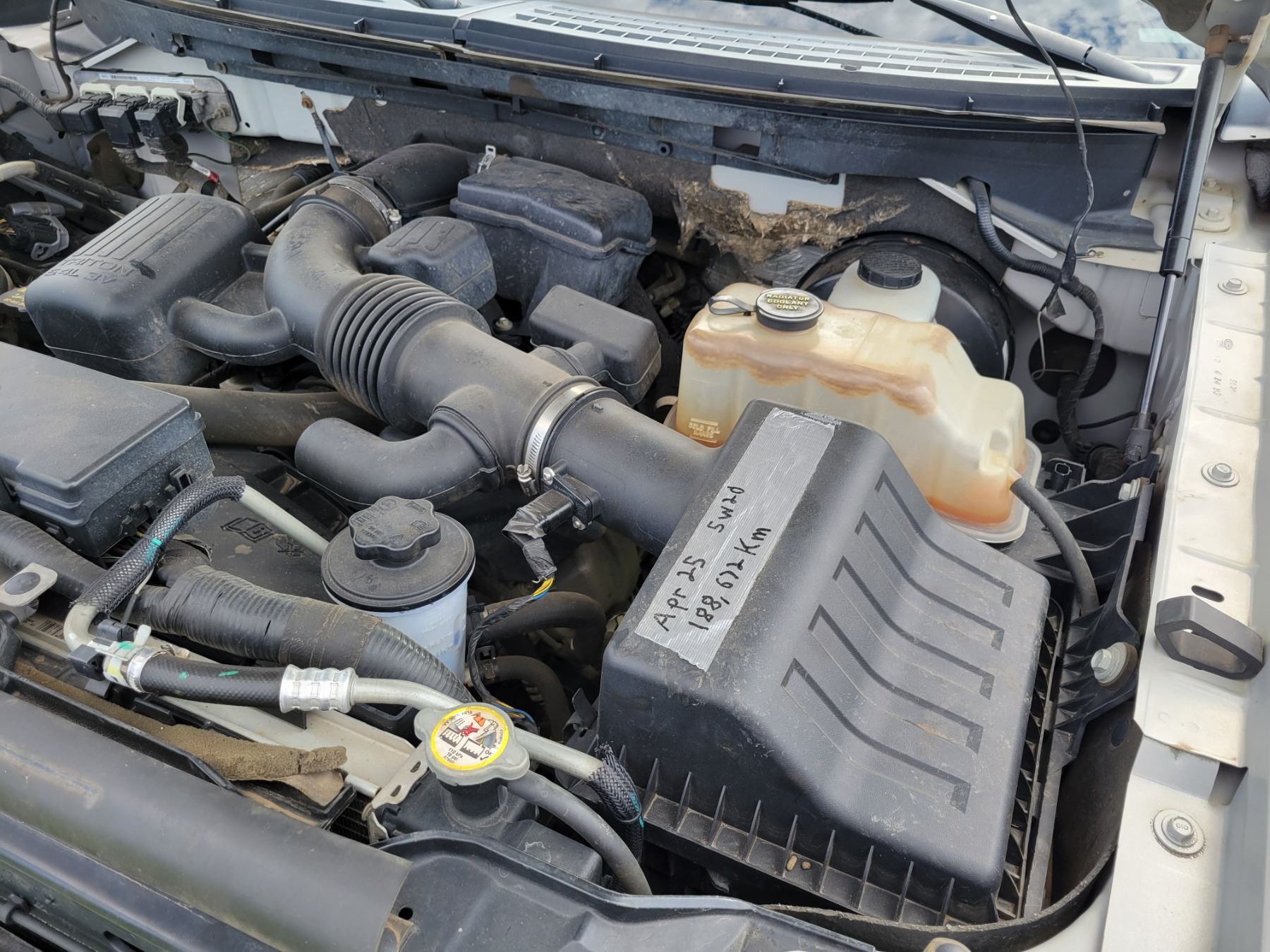 2009 Ford F150 Pickup, 5.4-V8, 6 spd auto, 4x4, 189,169 km, ext. cab, new windshield, keyless entry, remote start, tailgate step, rust on fenders, c/w trailer package, air, tilt, cruise, SN. 1FTPX14V49FB15586, Orig. owner