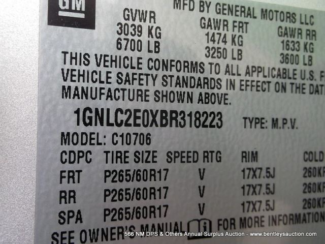 2011 CHEVROLET TAHOE ~ 140,104 MILES VIN: 1GNLC2E0XBR318223, SUV, 4X2, V8, 5.3L, SILVER & BLACK, AC COLD, 3/4 TANK GAS, NMDPS TITLE #: 11231434A545939 3 KEYS 1 FOB 2304-11