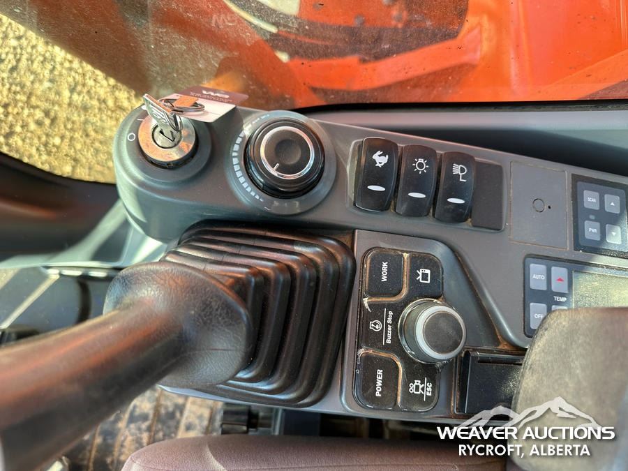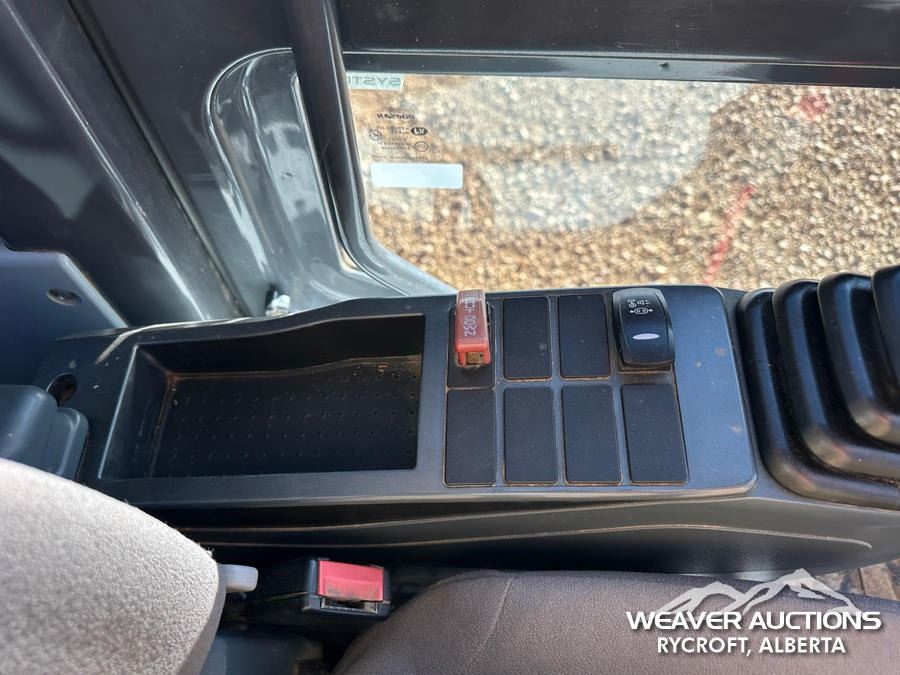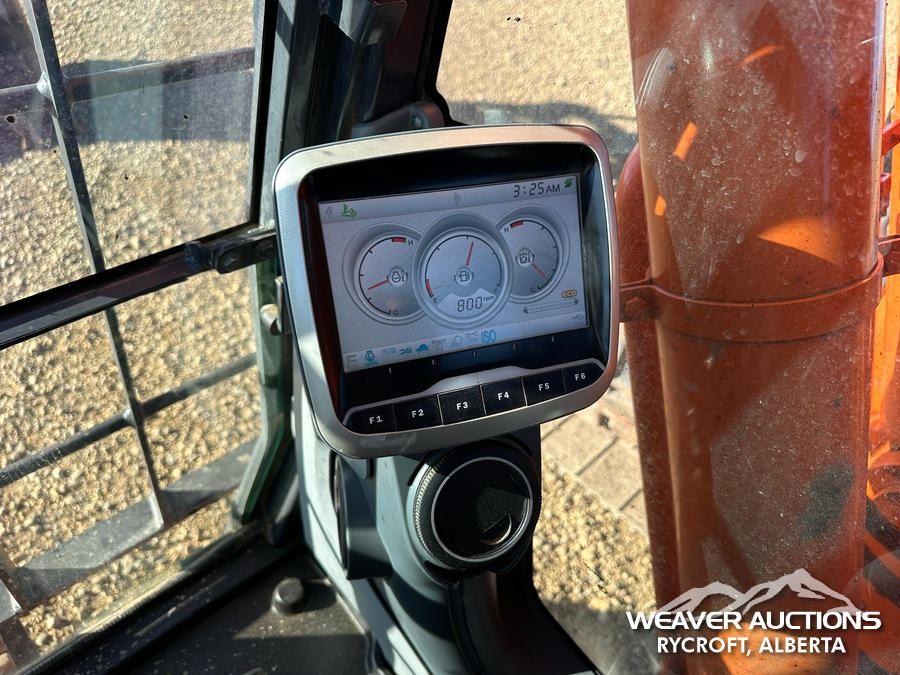 Specifications: AIR CONDITIONER, AIR RIDE SEAT, CAB SCREENS, POSITIVE AIR SHUTOFF, AUXILIARY HYDRAULIC PLUMBING, MANUAL QUICK COUPLER, HYDRAULIC THUMB, DIGGING BUCKET, WEBASTO