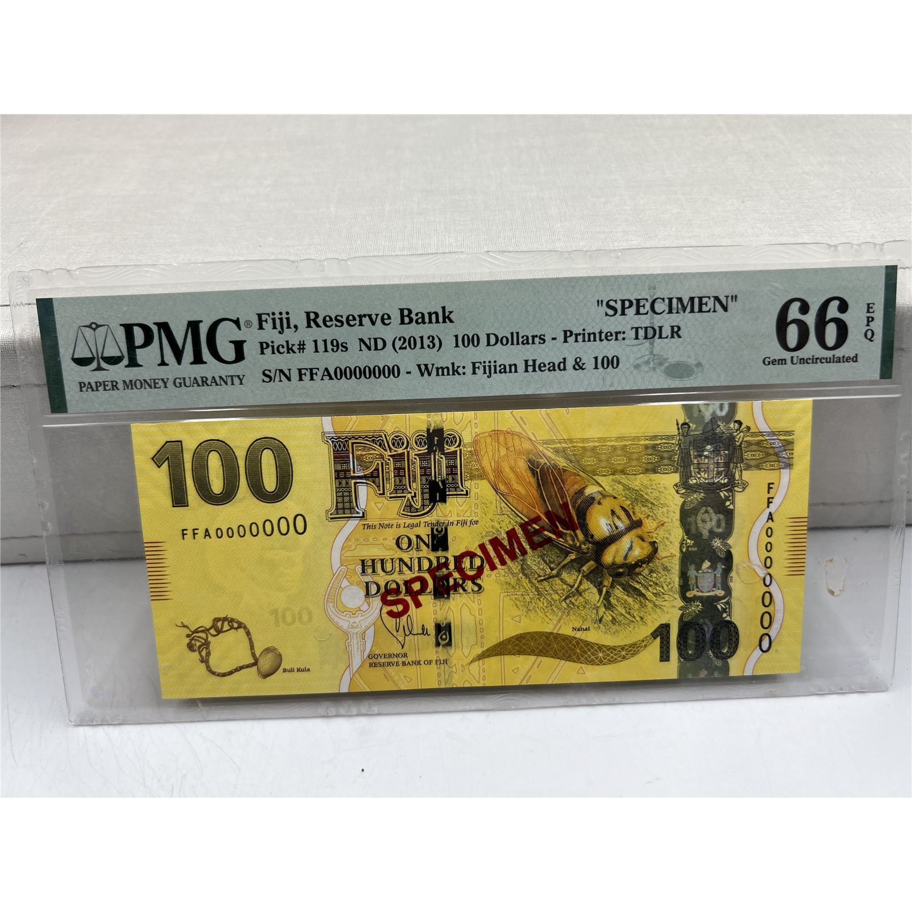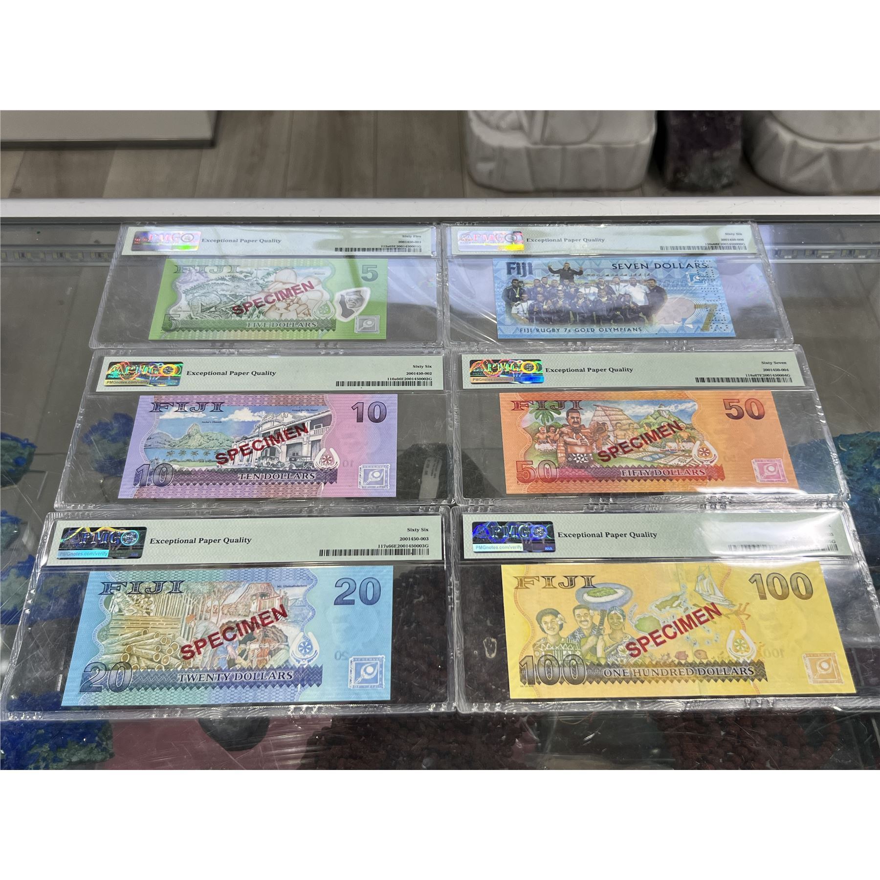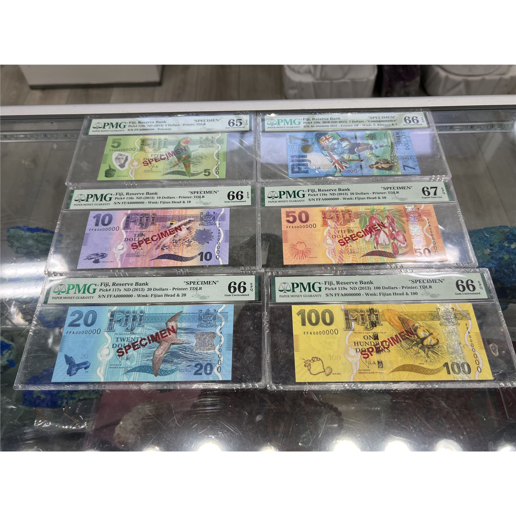 2013 FIJI RESERVE BANK NOTE SPECIMEN SET PMG WITH 2017 $7 SPECIAL RUGBY BANK NOTE.