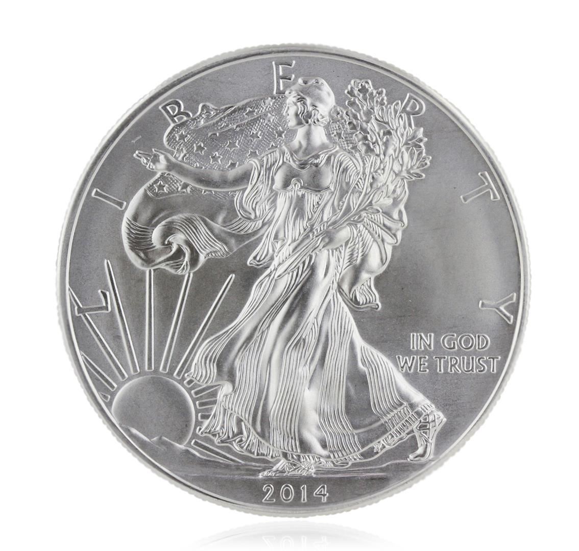 One 2014 American Silver Eagle Dollar Coin featuring 1 oz. fine silver.