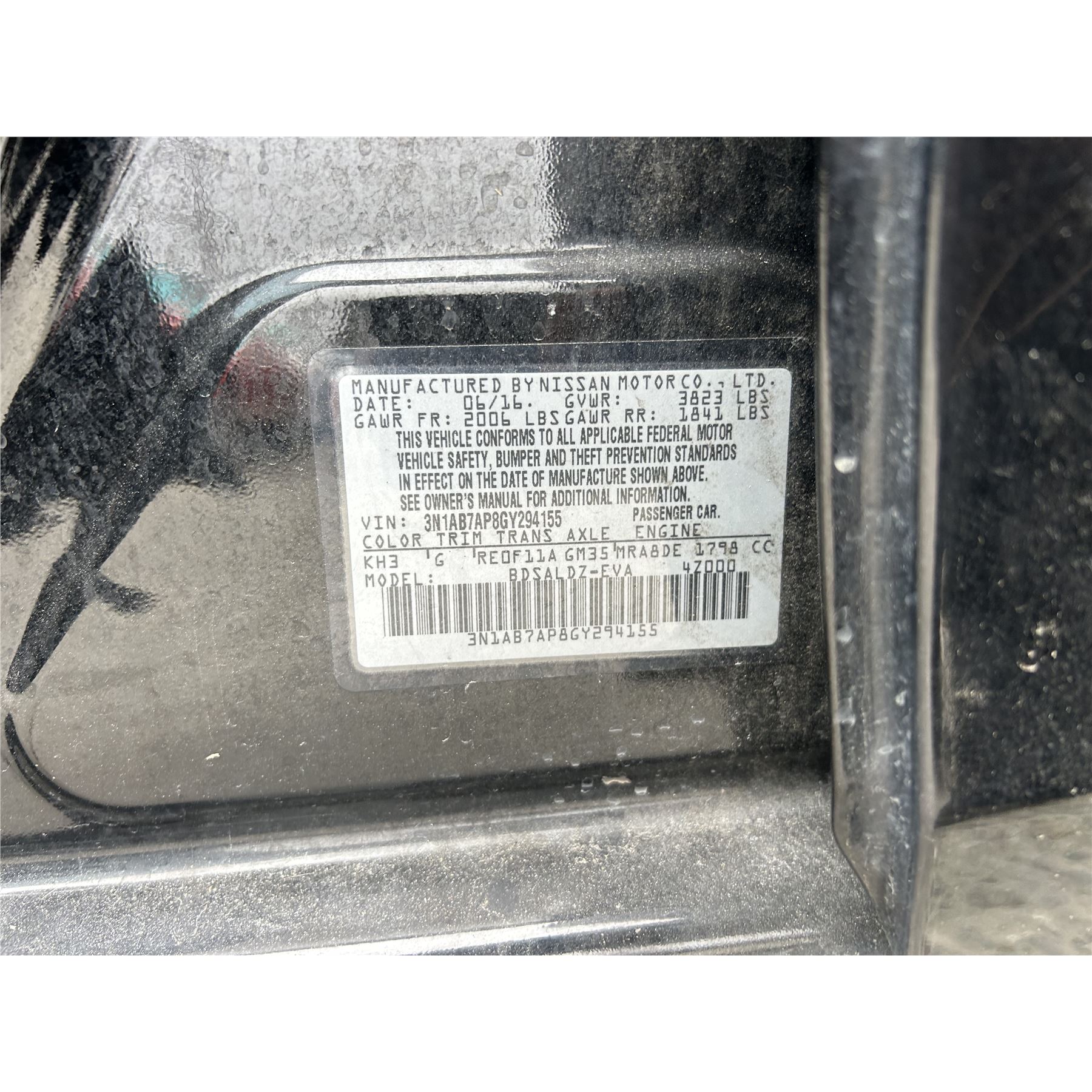 Title: T, Plate Expiration: 12-08-2022, Pno: NO, Vin: 3N1AB7AP8GY294155 , Mileage: 136297