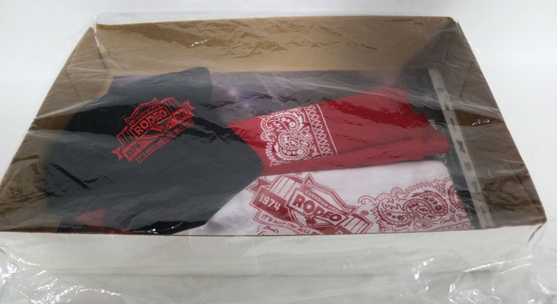 2017 CANADIAN FINALS RODEO "IT'S BEEN ONE HELL OF A RIDE" 1974-2017 2 POSTERS, 1 BALL CAP AND 2 BANDANAS