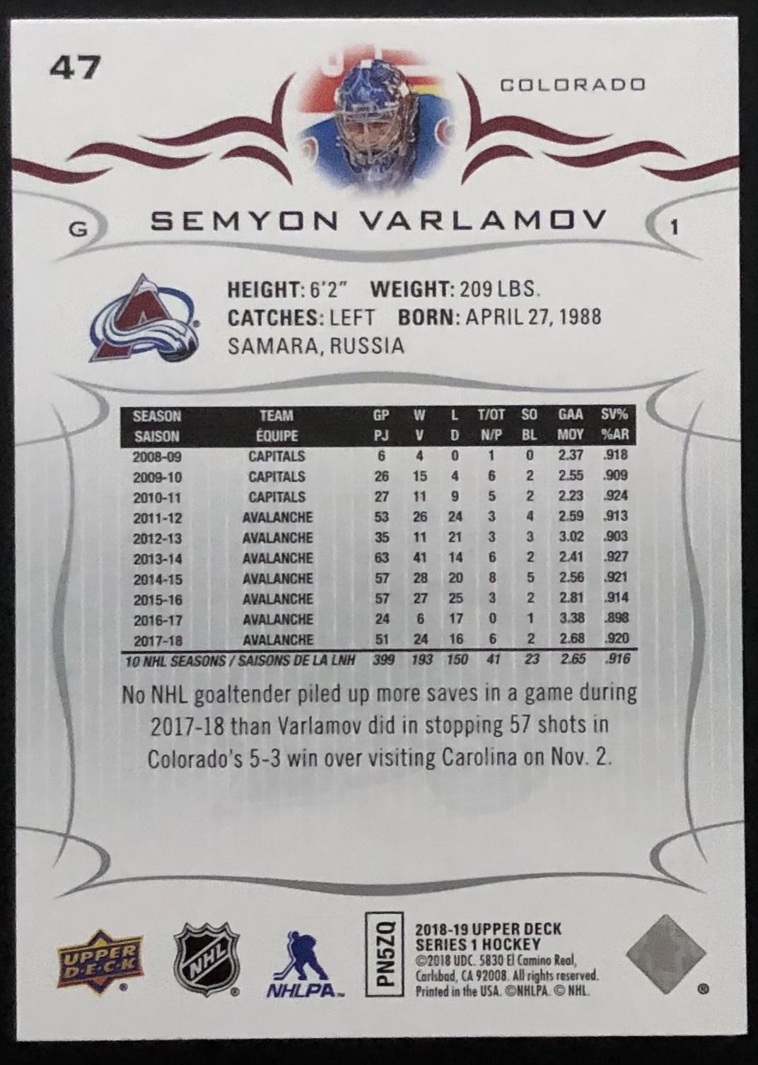 Card #47 hockey, NHL, UD