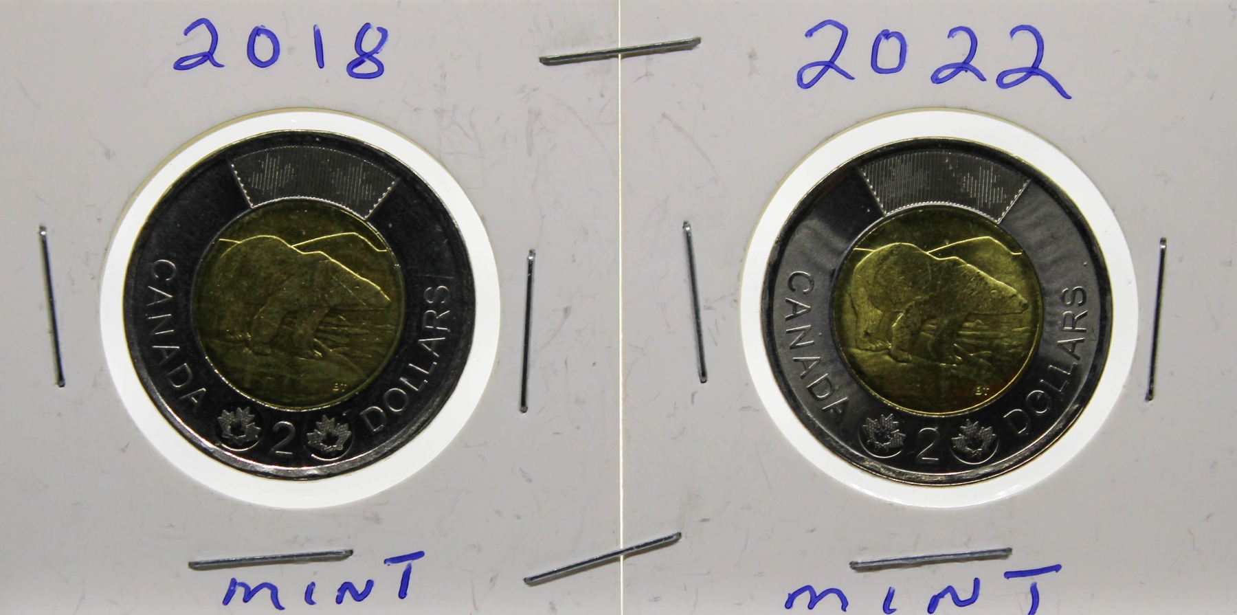 2018 & 2022 CANADIAN MINT $2 DOLLAR COINS