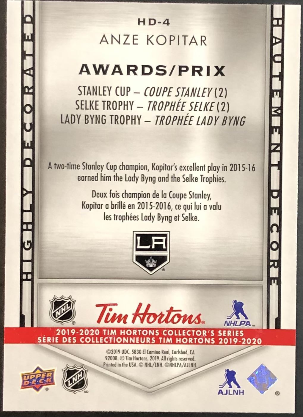 Tim Hortons card #HD-4 UD, NHL, hockey, regonal