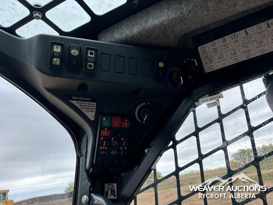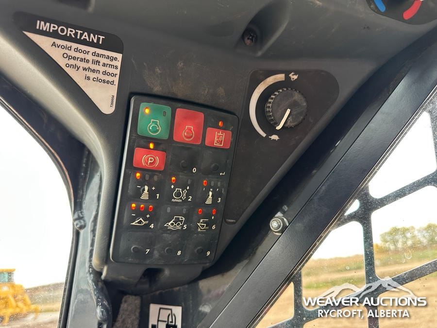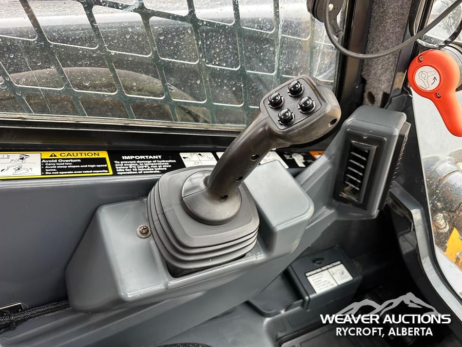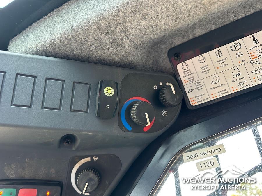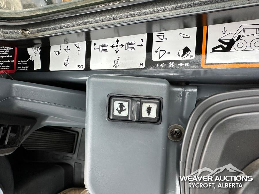 Specifications: ENCLOSED CAB, AIR CONDITIONER, RIDE CONTROL, JOYSTICK STEERING, HYDRAULIC COUPLER, 72 IN BUCKET, COUNTERWEIGHT KIT, 12 X 16.5 TIRES