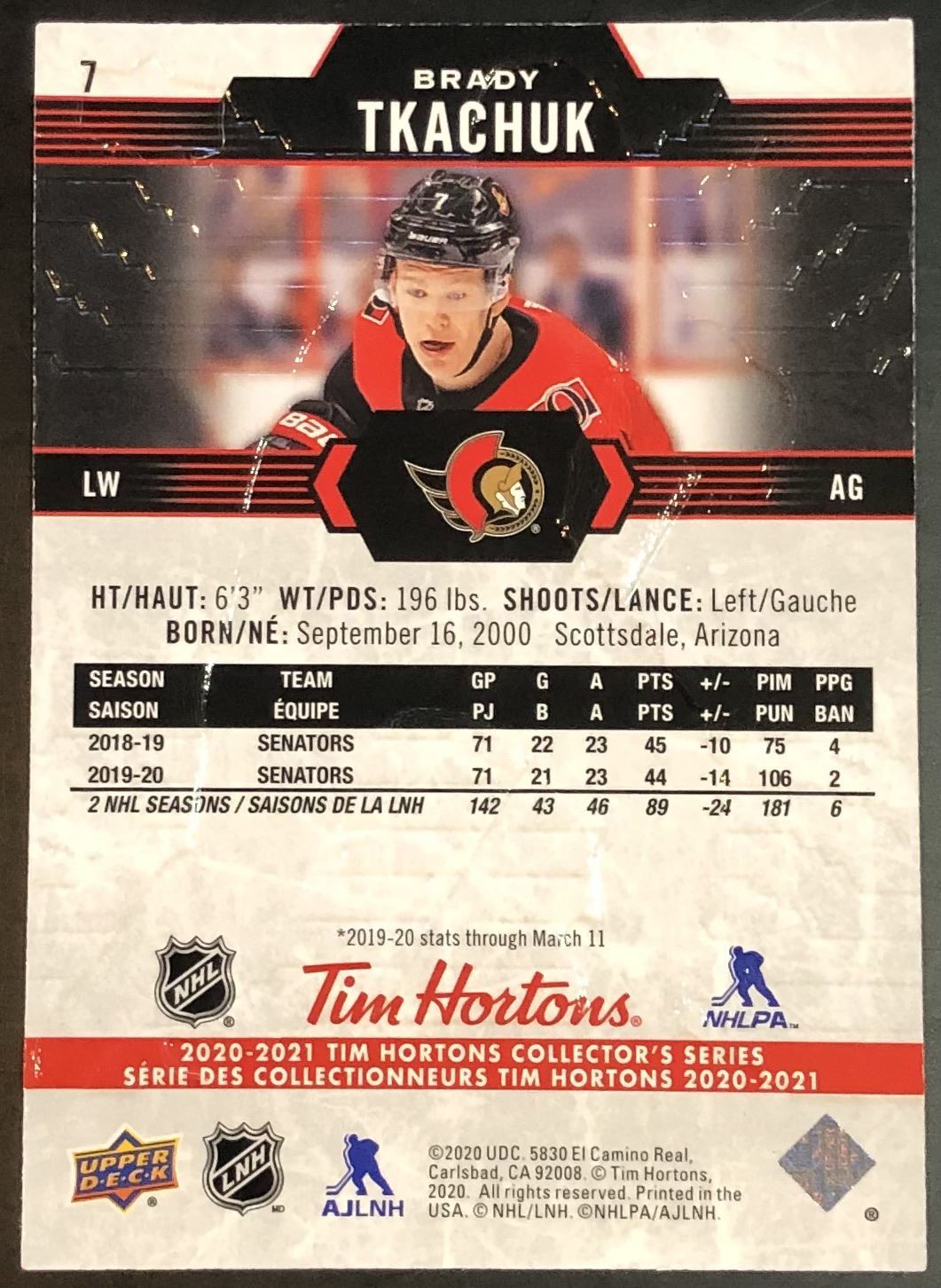Tim Hortons card #7 NHL, hockey, UD, regional