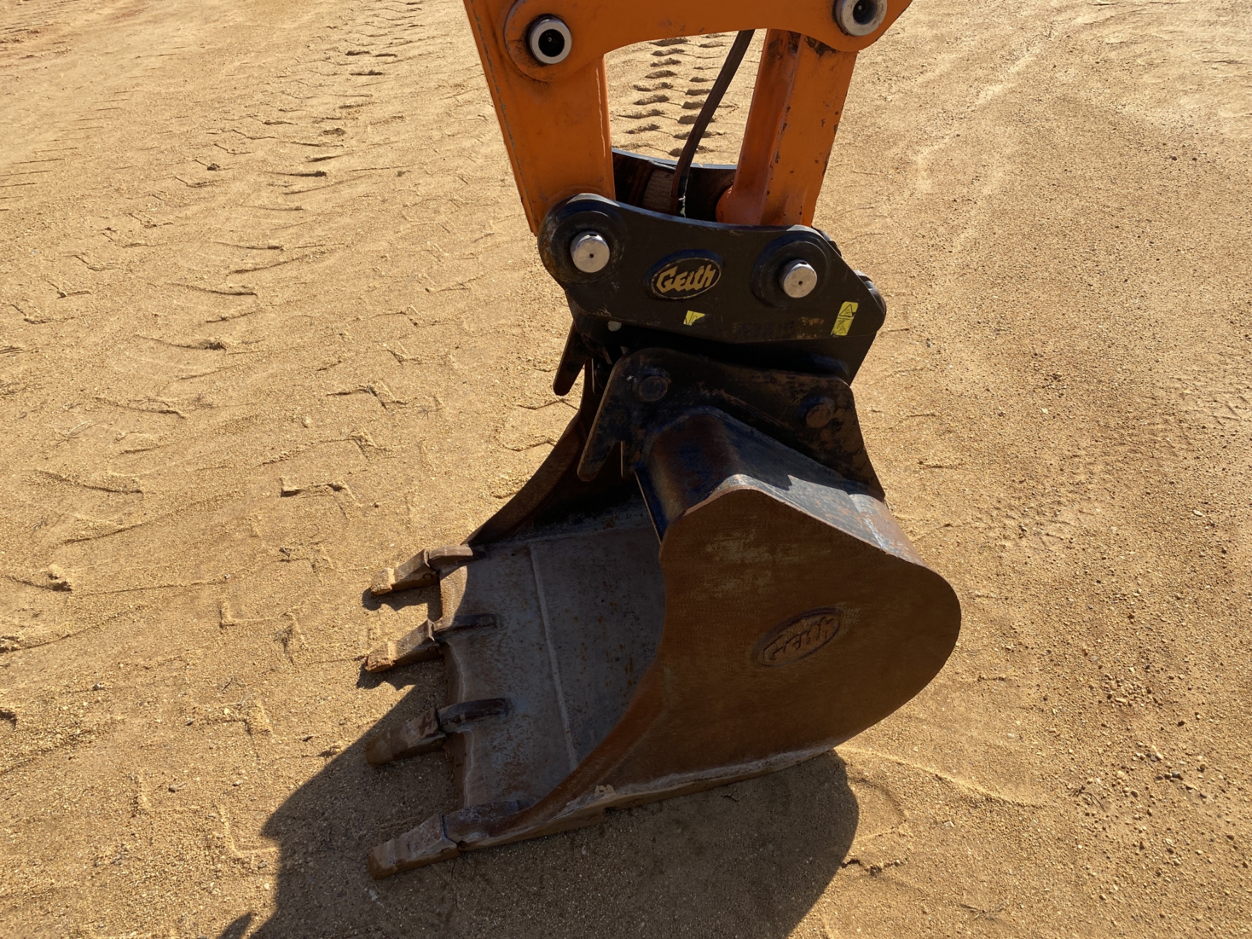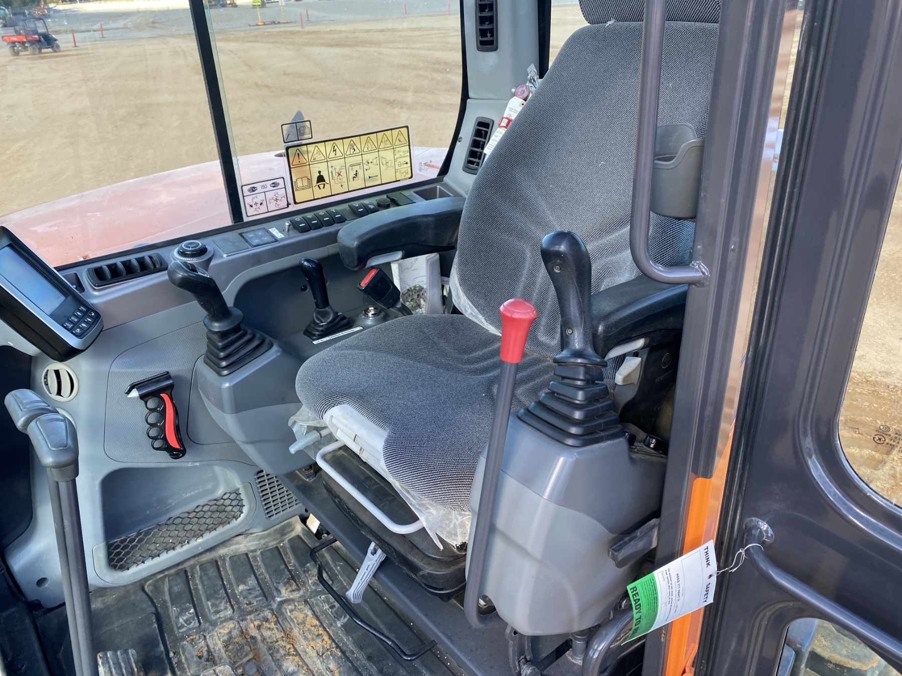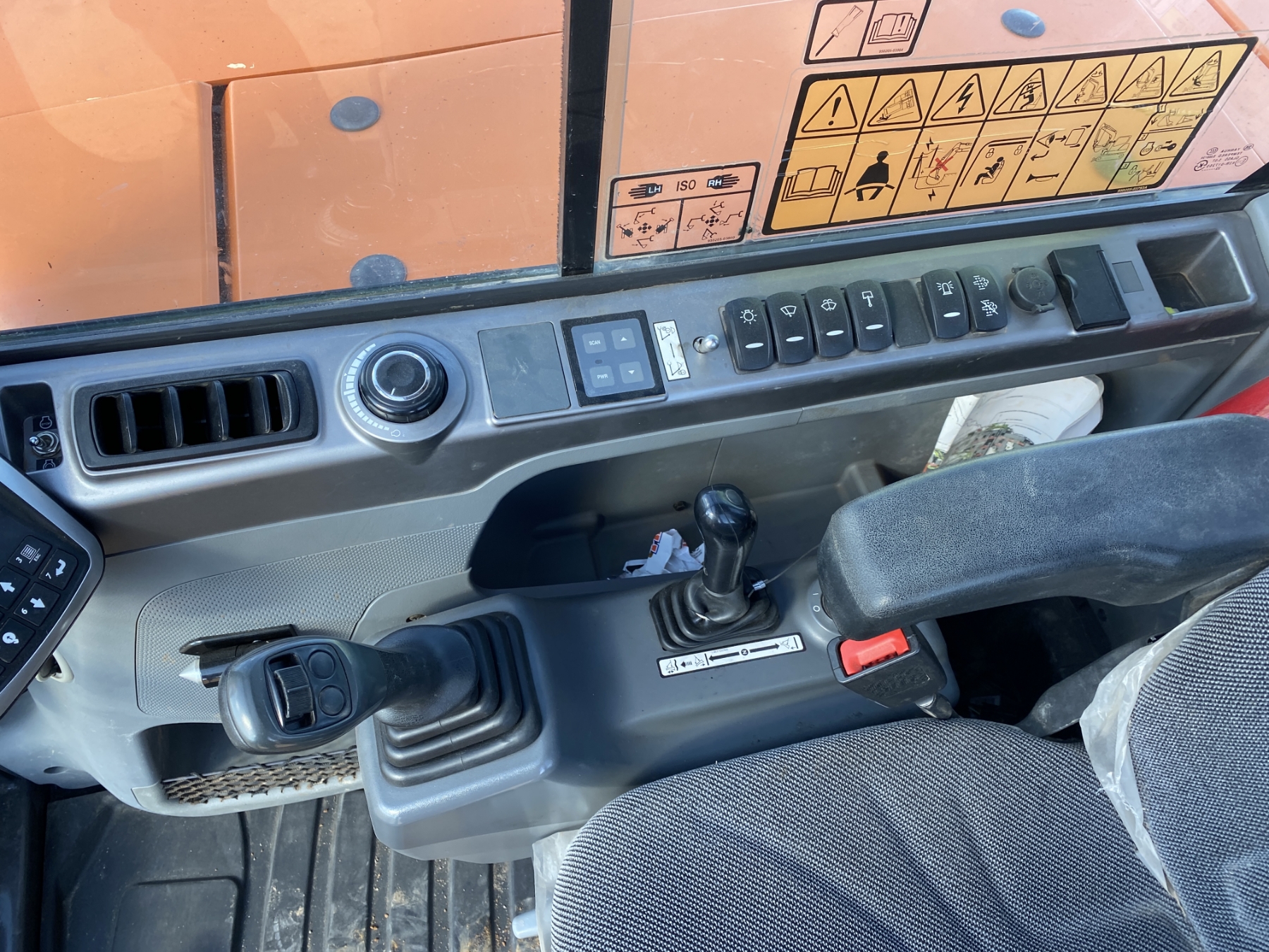 7' 3" stick, 30" bucket, coupler, aux hyd, blade, rubber tracks, cab, A/C