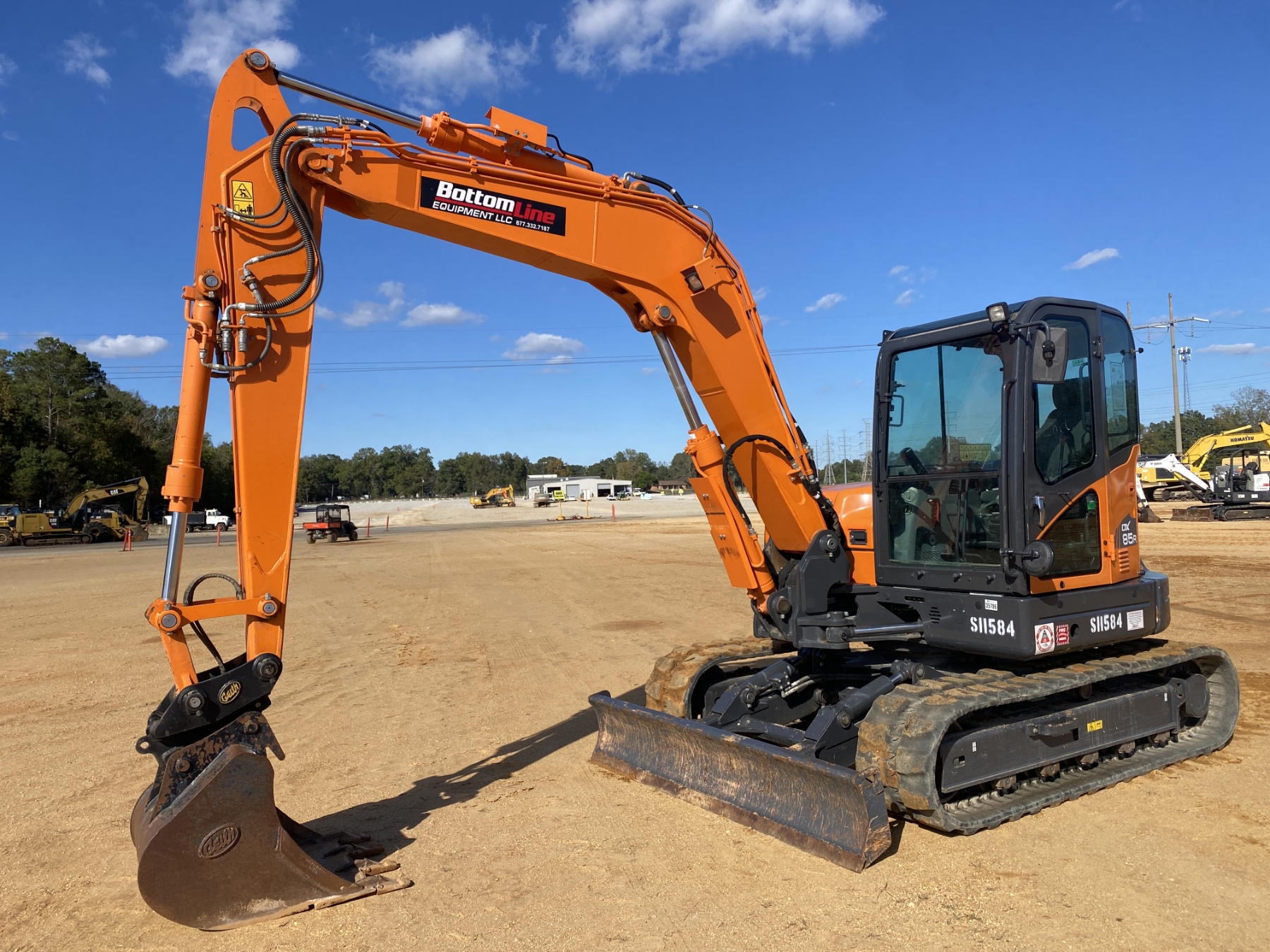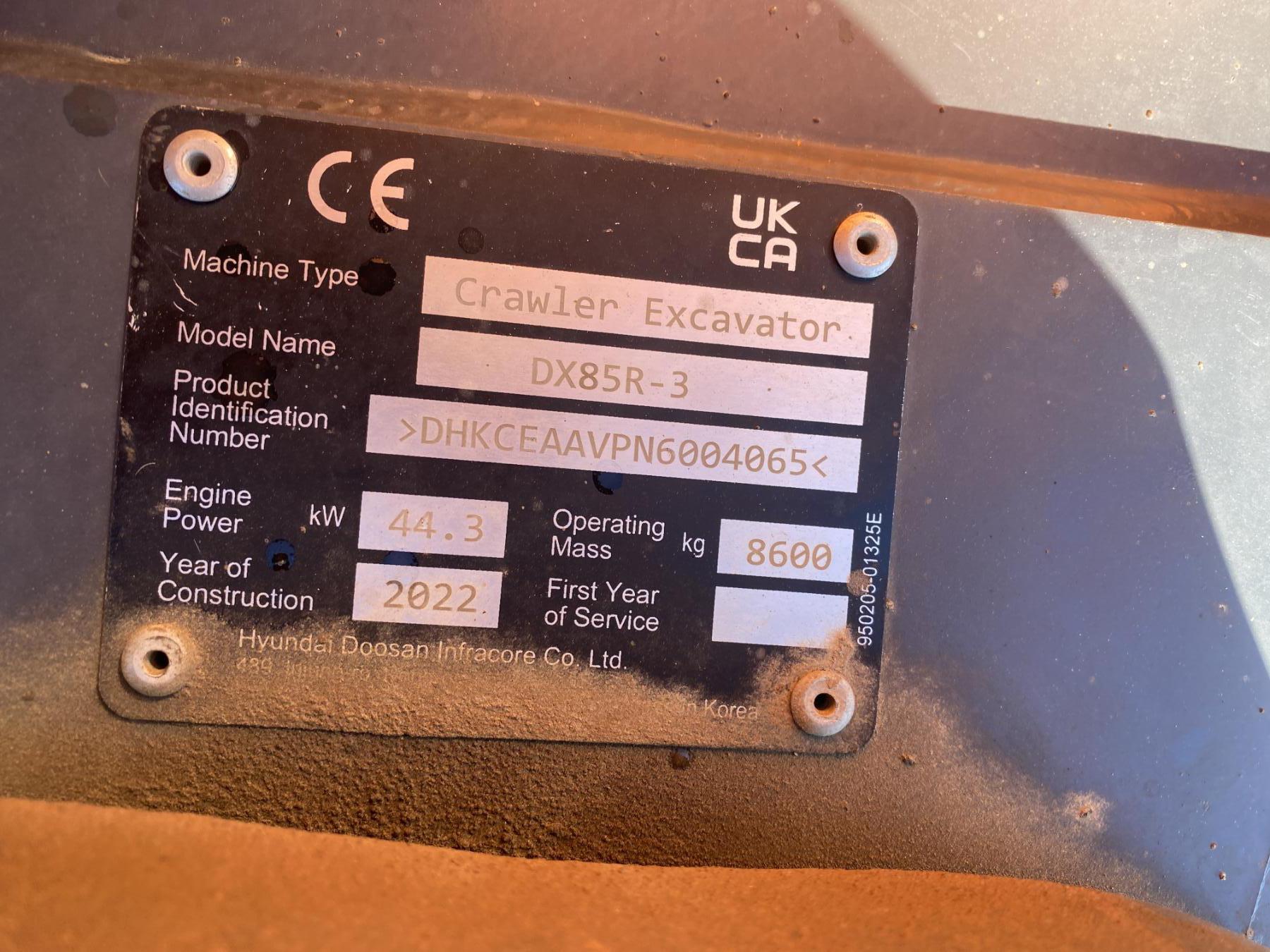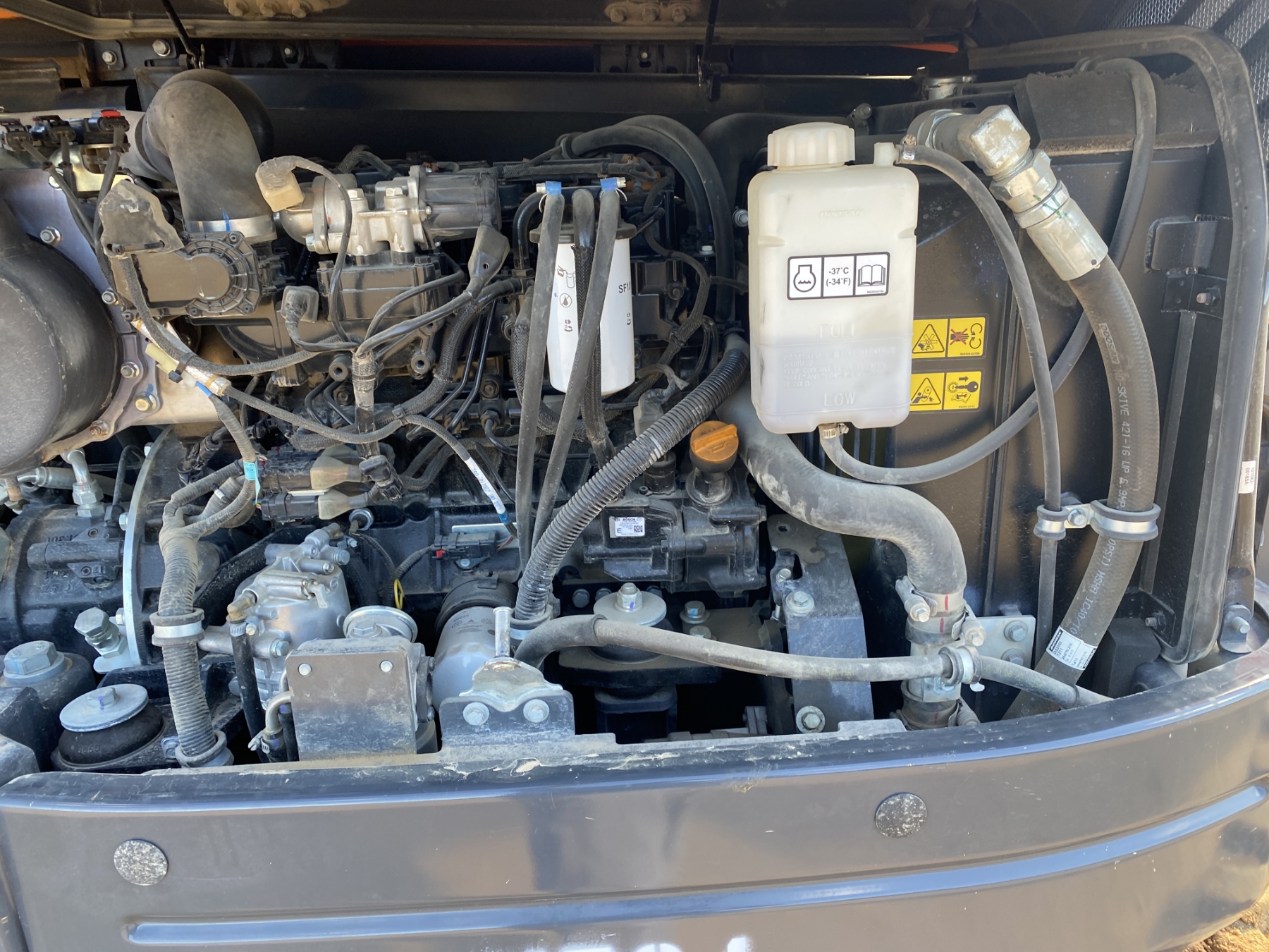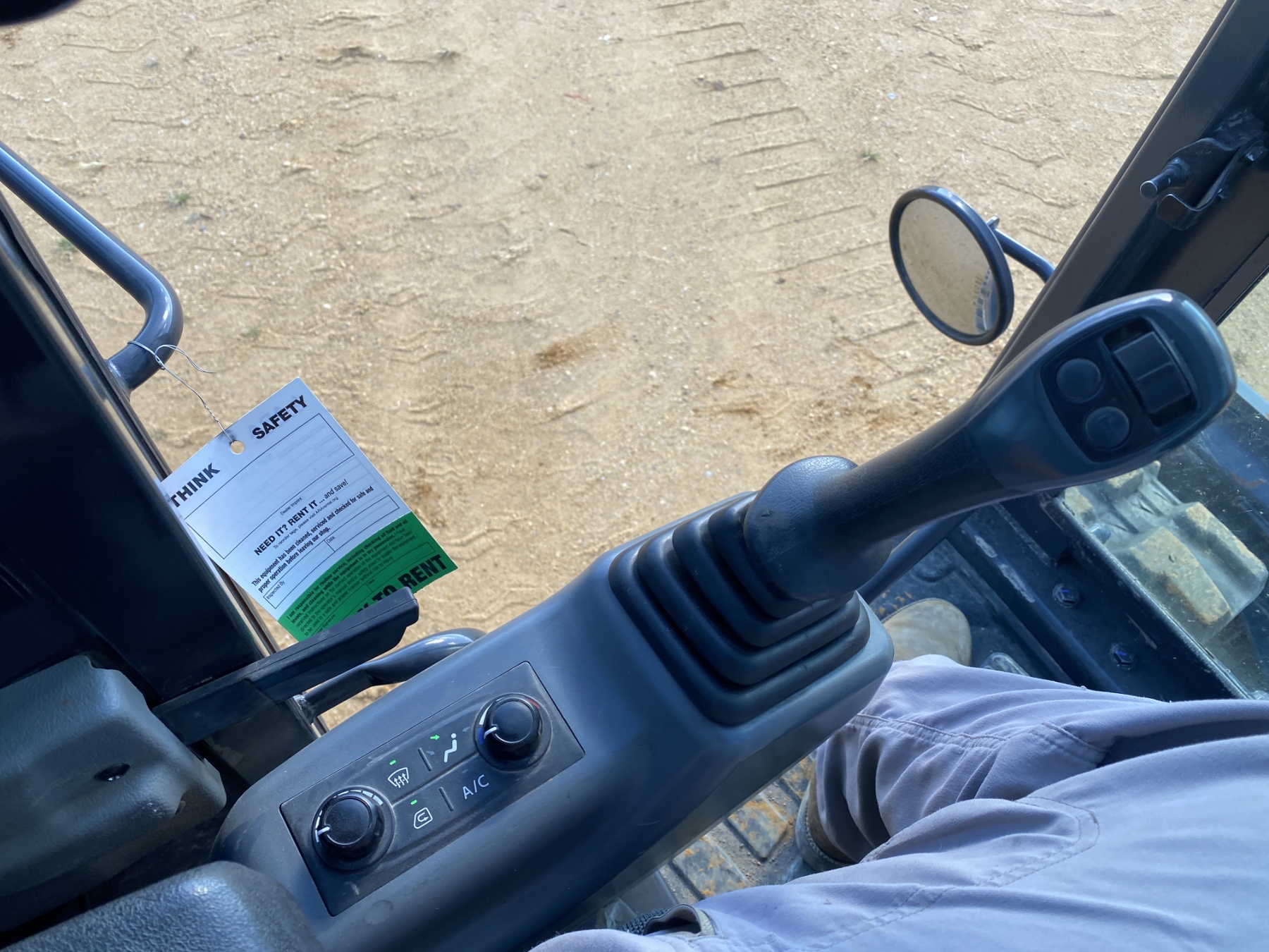 7' 3" stick, 30" bucket, coupler, aux hyd, blade, rubber tracks, cab, A/C