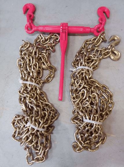 Unused 2023 Greatbear quantity of 5-5400lbs. ratchet binder and 10-5/16" 20' G70 chain.