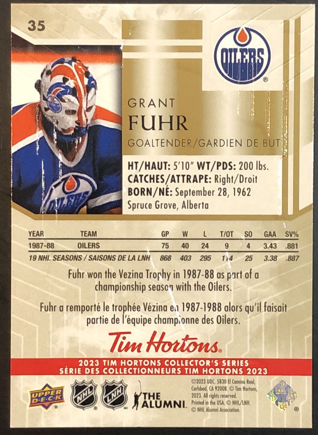 Tim Hortons card #35 UD, NHL, hockey, regional, hall of fame