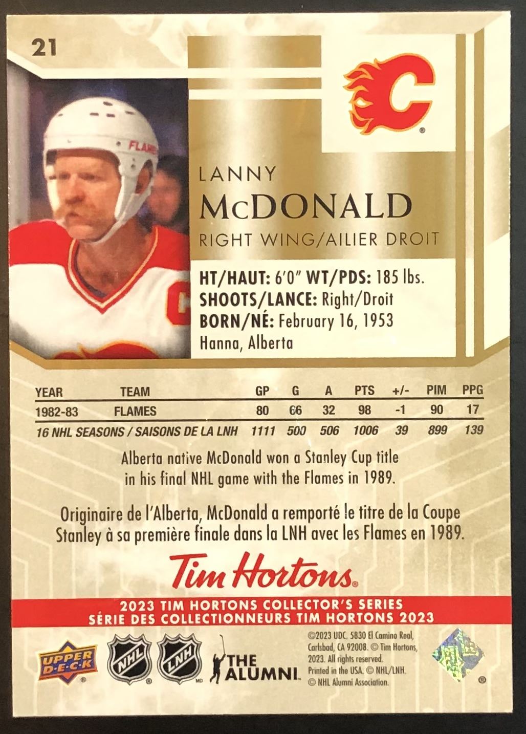 Tim Hortons card #21 UD, NHL, hockey, regional, hall of fame