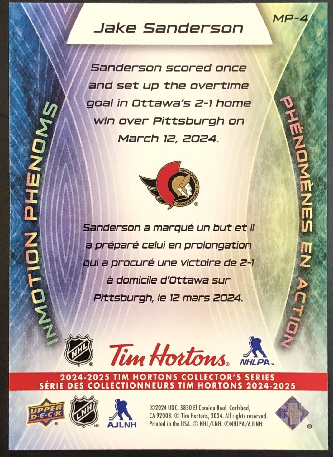 Tim Hortons card #MP-4 UD, NHL, hockey, regional, rookie
