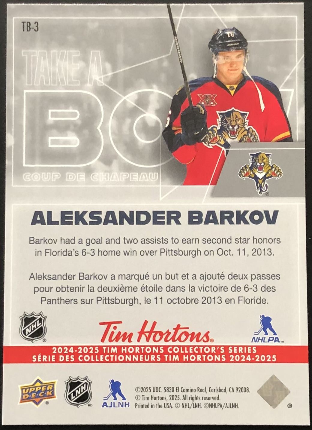 Tim Hortons card #TB3 NHL, hockey, UD, regional