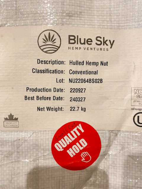 22.7KG BLUE SKY HULLED HEMP NUT - GREAT FOR GRANOLA BAKING ETC.