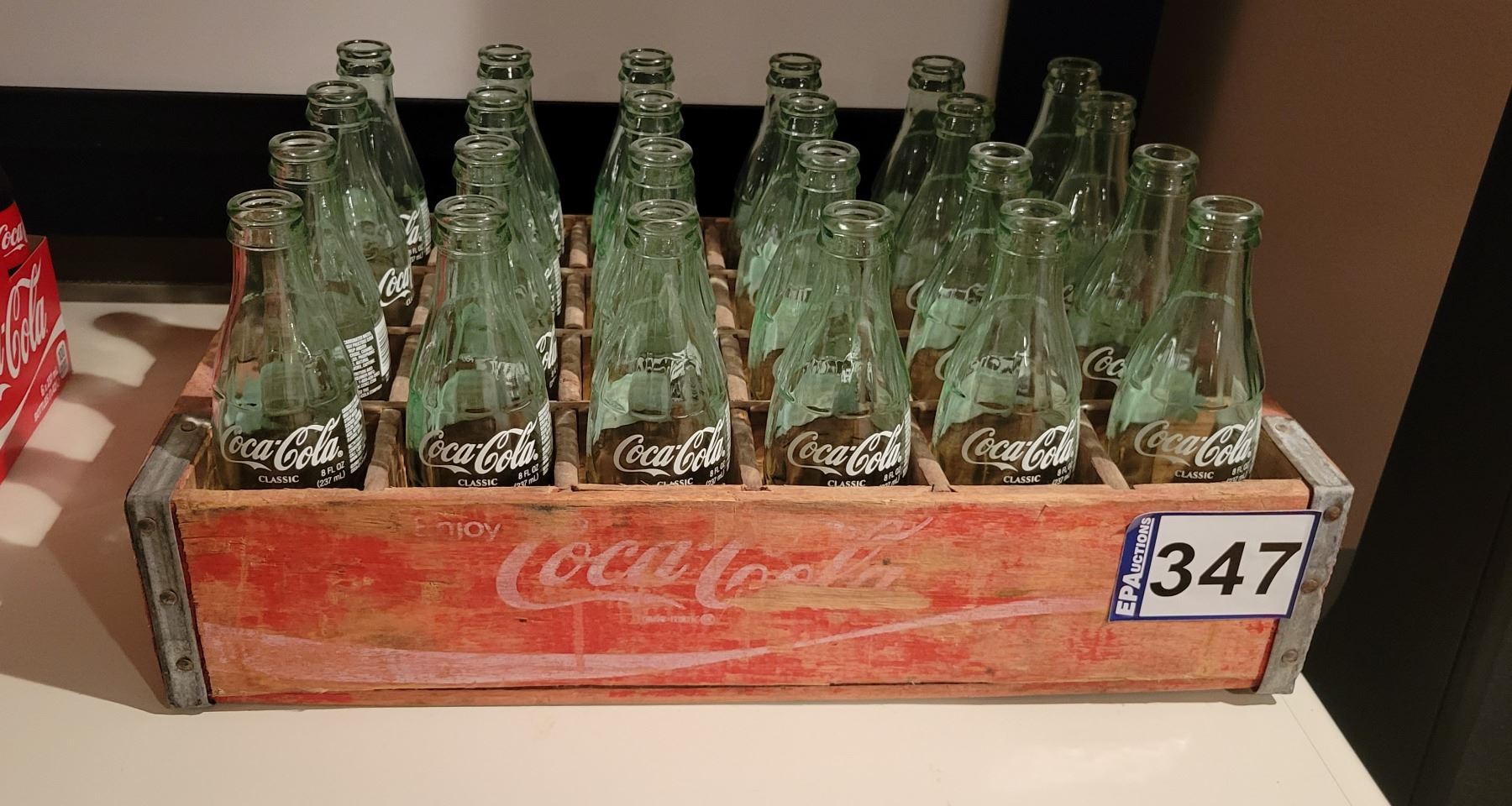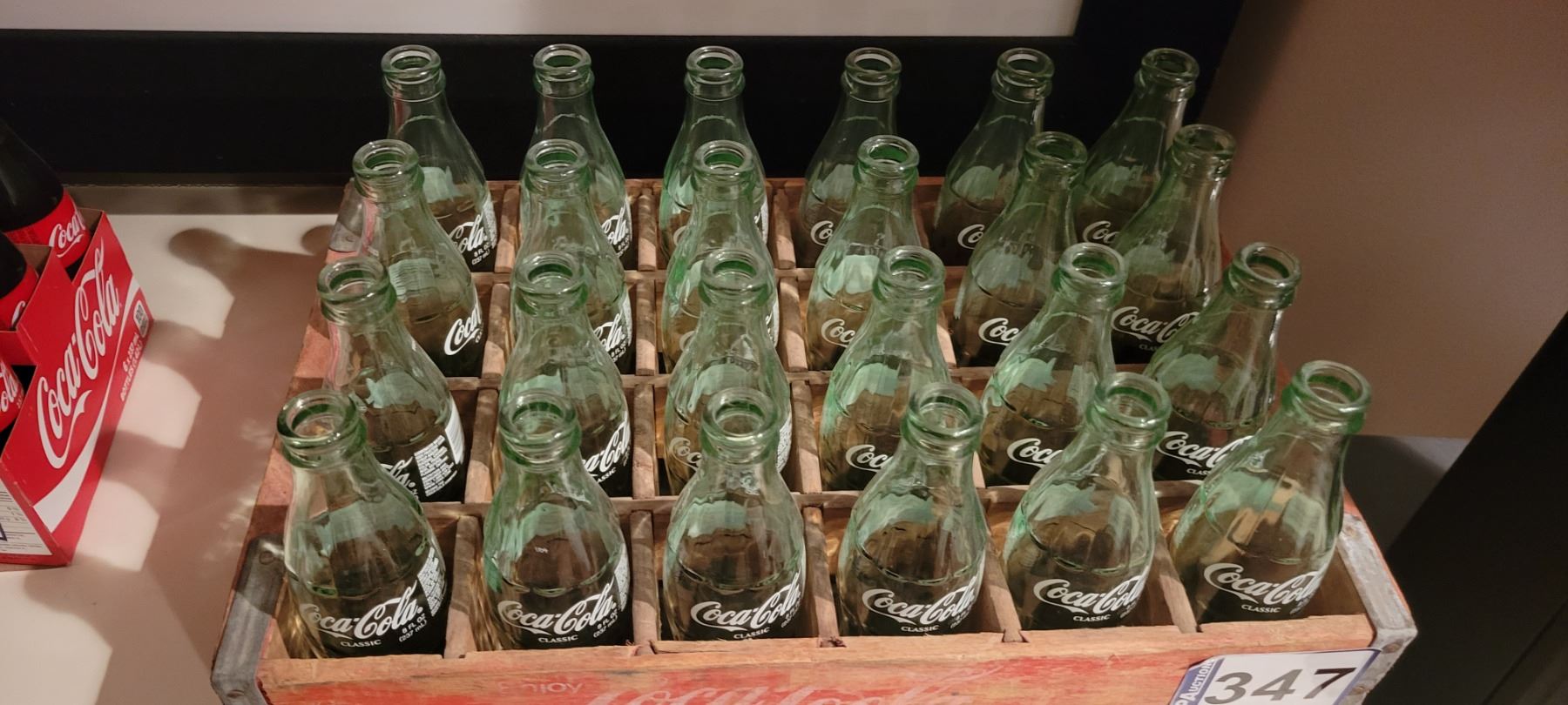 24- Empty cola bottles c/w wooden case
