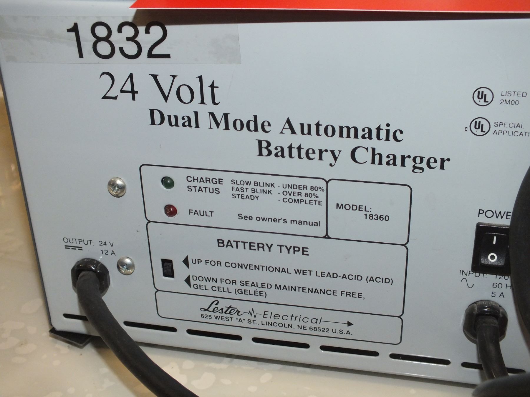 24 Volt Duel Mode Automatic Battery Charger, all i can tell u that it lights up...used