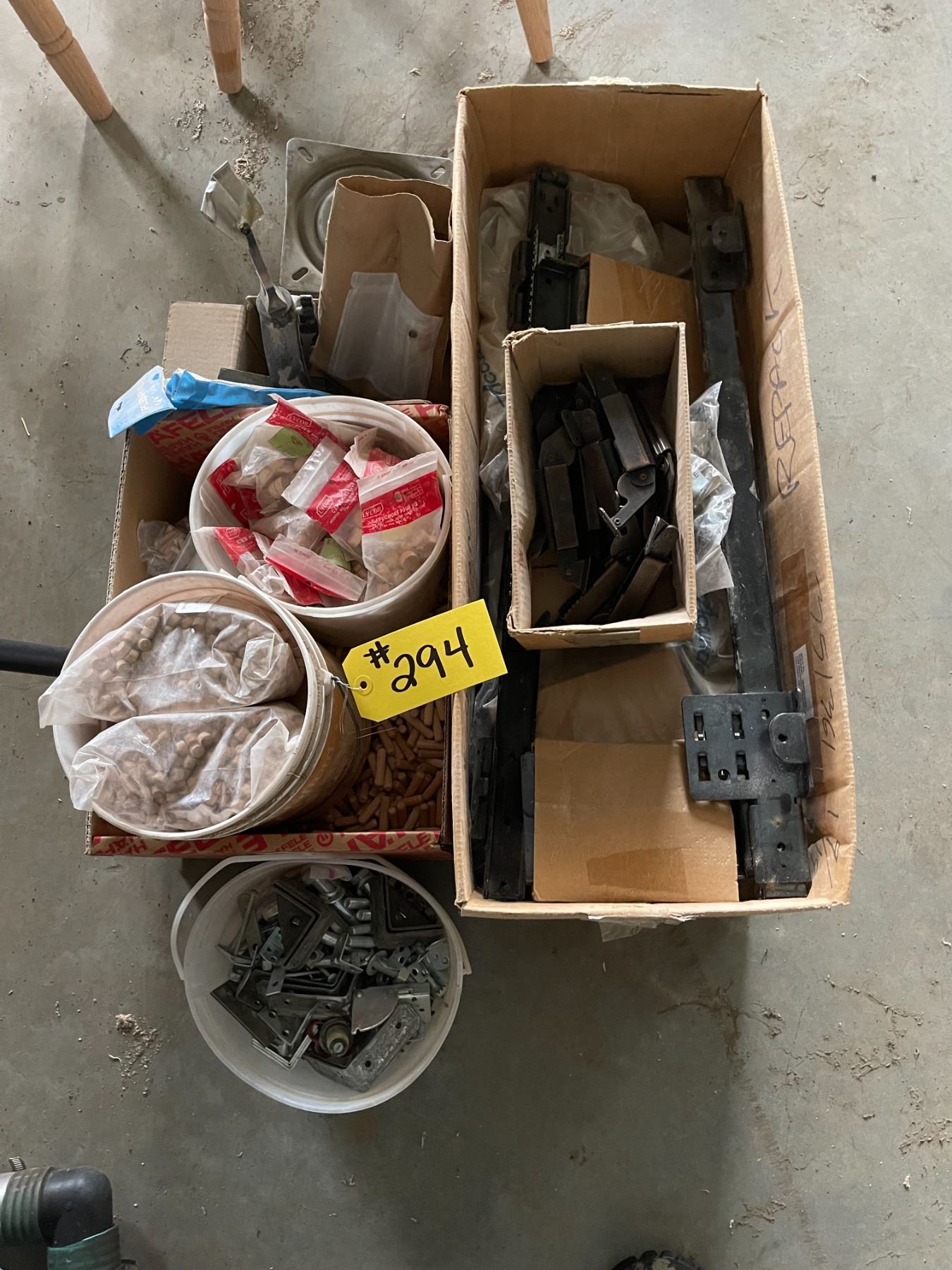 26" pocket door slides, hinges, 4 barstool swivels, oak & maple wood plugs, dowels, misc bracket and screws