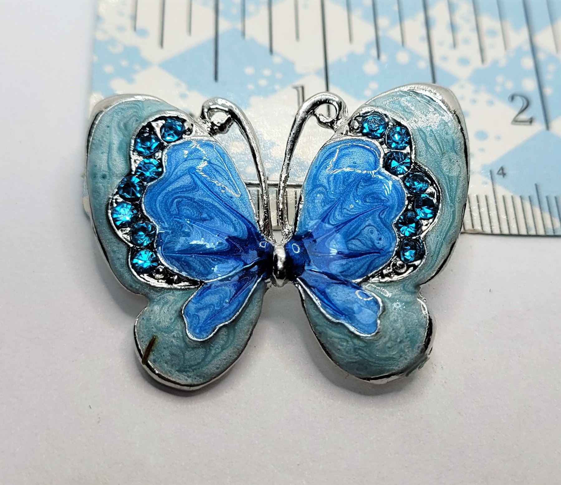 27) SHADES OF BLUE ENAMEL WITH RHINESTONES SILVER TONE BUTTERFLY BROOCH