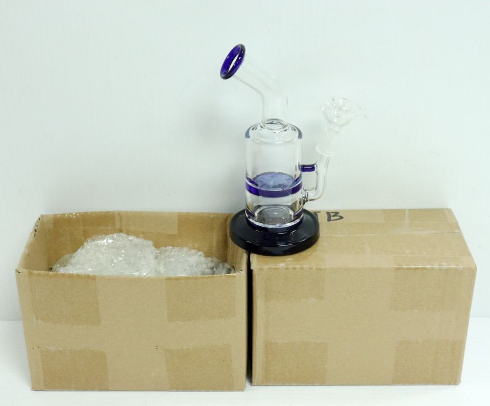 2PK OF SMALL GLASS BONGS; CLEAR/ BLUE