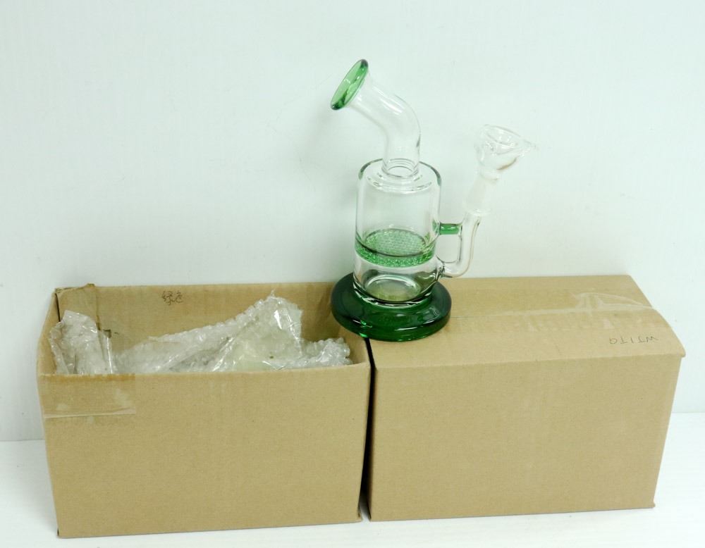 2PK OF SMALL GLASS BONGS; CLEAR/ GREEN