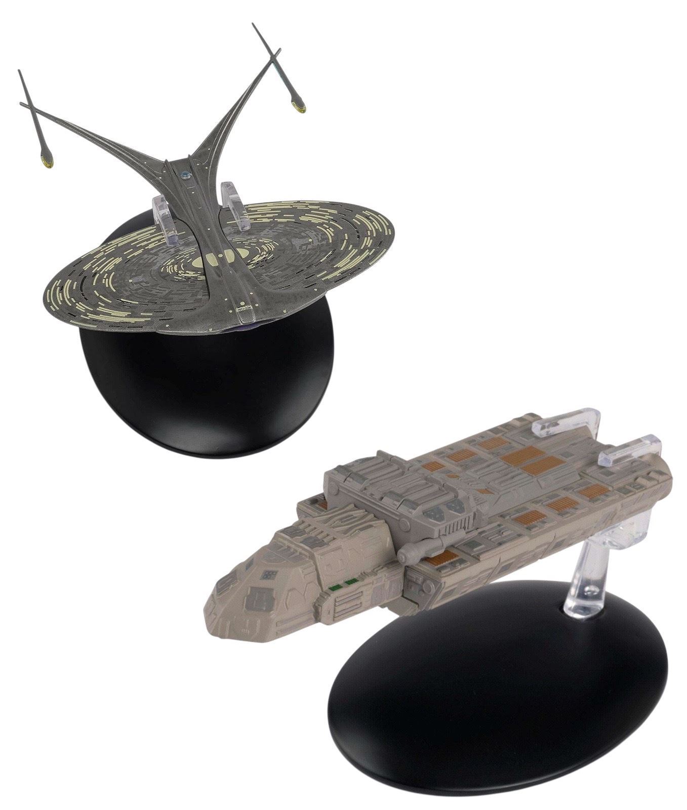 2pc Star Trek Starship Models - U.S.S Enterprise NCC-1701-J 4617-A/C 2018 & Hirogen Holoship 1885-A/A 2017 with base & stand. DOESN'T INCLUDE BOX(ES)