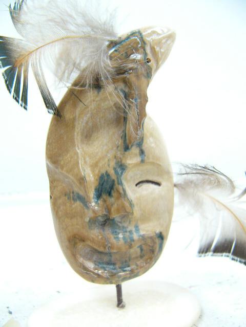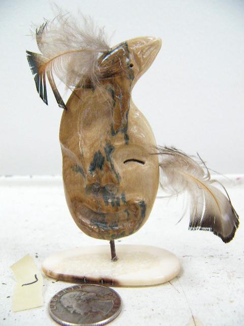 3-1/2" carved mastodon ivory mounted on fossilized ivory by Iglaak of Koyuk (114)