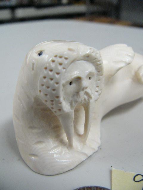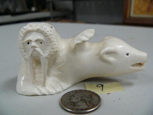 3-1/2" polar bear, man, walrus out of mammoth ivory Iglaak from Koyuk, AK (114)