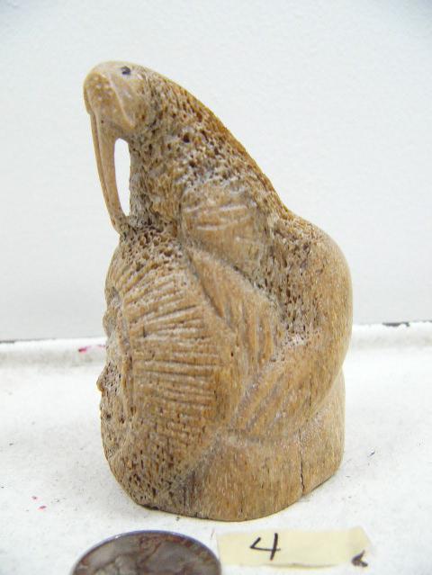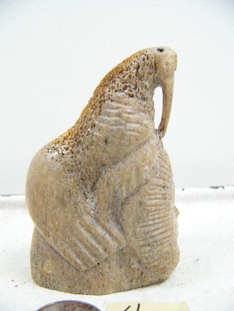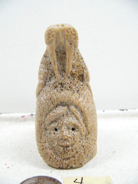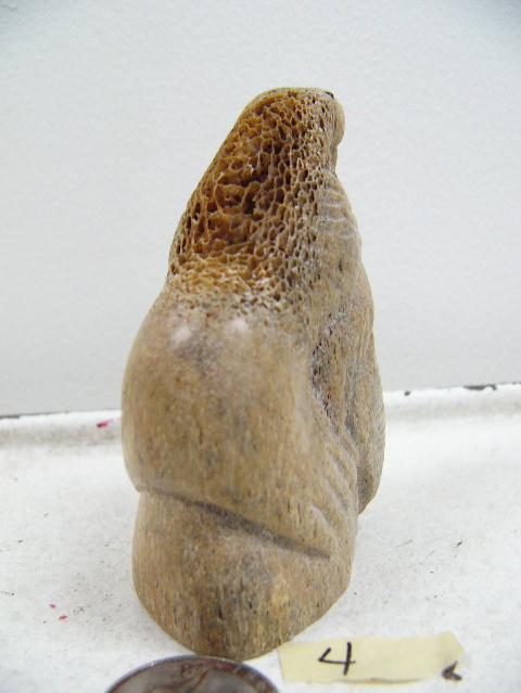 3-1/2" whale bone carving of walrus and man's face by Iglaak of Koyuk, AK (114)