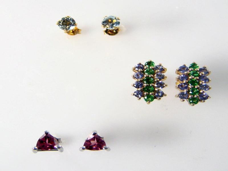 (3) 14kt Gold Tourmaline Topaz Tanzanite Being Sold Times The Money Total Retail $1,405 3 Row Tanzanite & Peridot Earrings 14kt Yellow Gold Retail Value $480 Round Shape Studs Blue Topaz Earrings 14kt Yellow Gold Retail Value $350 AA Tourmaline Trillion Earrings 14kt White Gold Retail Value $575