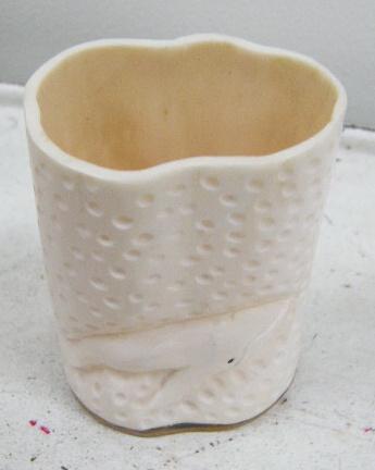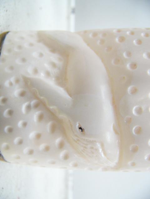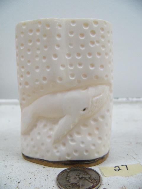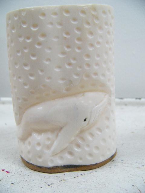 3-3/4" ivory cup with mammoth ivory base carved with 2 whales by Iglaak (114)