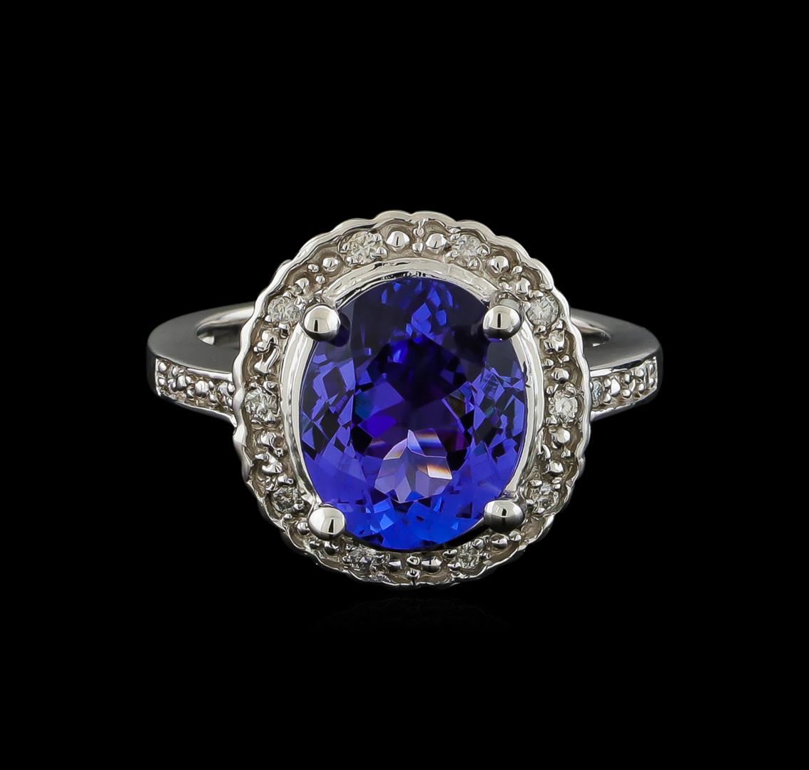 One Ring featuring: 14KT White Gold weighing 5.45 grams containing one Tanzanite center stone with a total weight of 3.65ct and Diamonds with a total weight of 0.12ct.