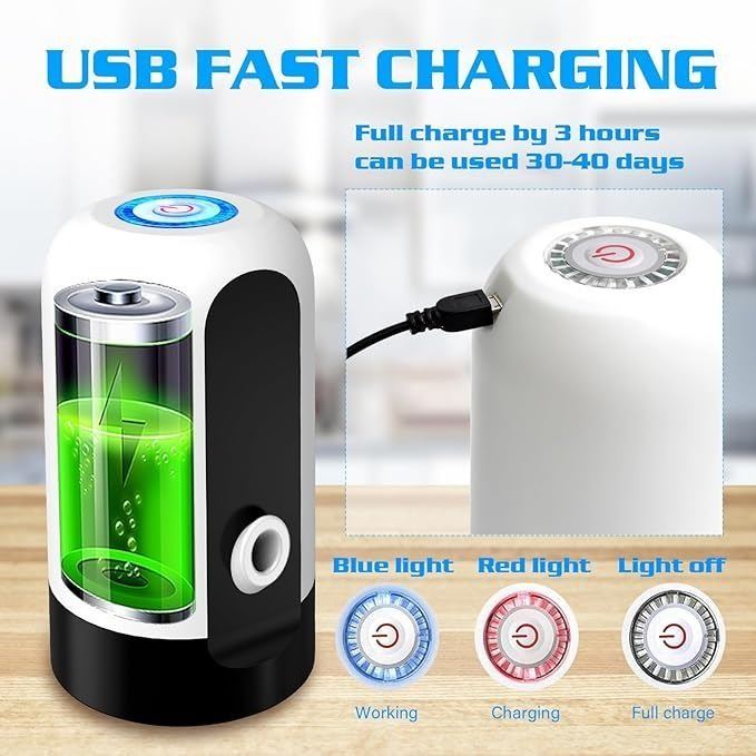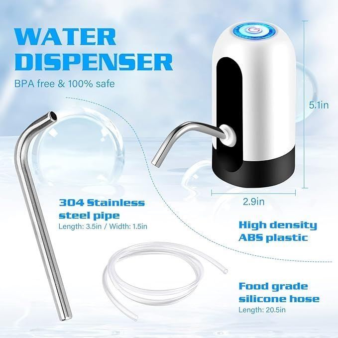- Automatic Water Dispensers for 5 Gallon Bottle, Portable Electric Water Pump with USB Charging Cable; White Automatic Drinking Water Bottle Pump for Travel, Kitchen, Camping, Home, Office etc.