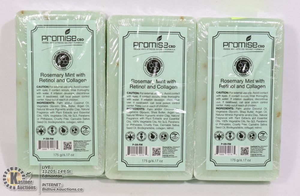 3 BARS OF PROMISE CBD ROSEMARY MINT WITH RETINOL AND COLLAGEN SOAP (175G EA)
