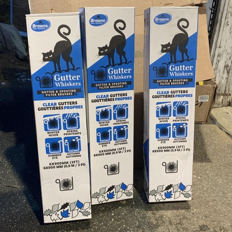 3 BOXES OF NEW BROWN'S GUTTER PROTECTOR WHISKERS RETAIL $150 18 FT PER BOX